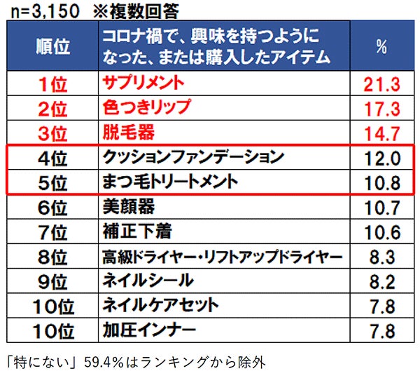 コロナ禍の美容トレンド調査 美容室でこの1年間人気メニュー1位は「髪質改善」おうち美容は「サプリメント」「色つきリップ」「脱毛器」がランキング上位