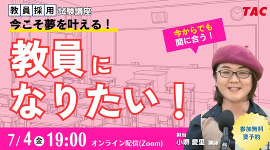 【教員採用試験】オンラインセミナー「今こそ夢を叶える。教員になりたい!」を7/4(金)に開催