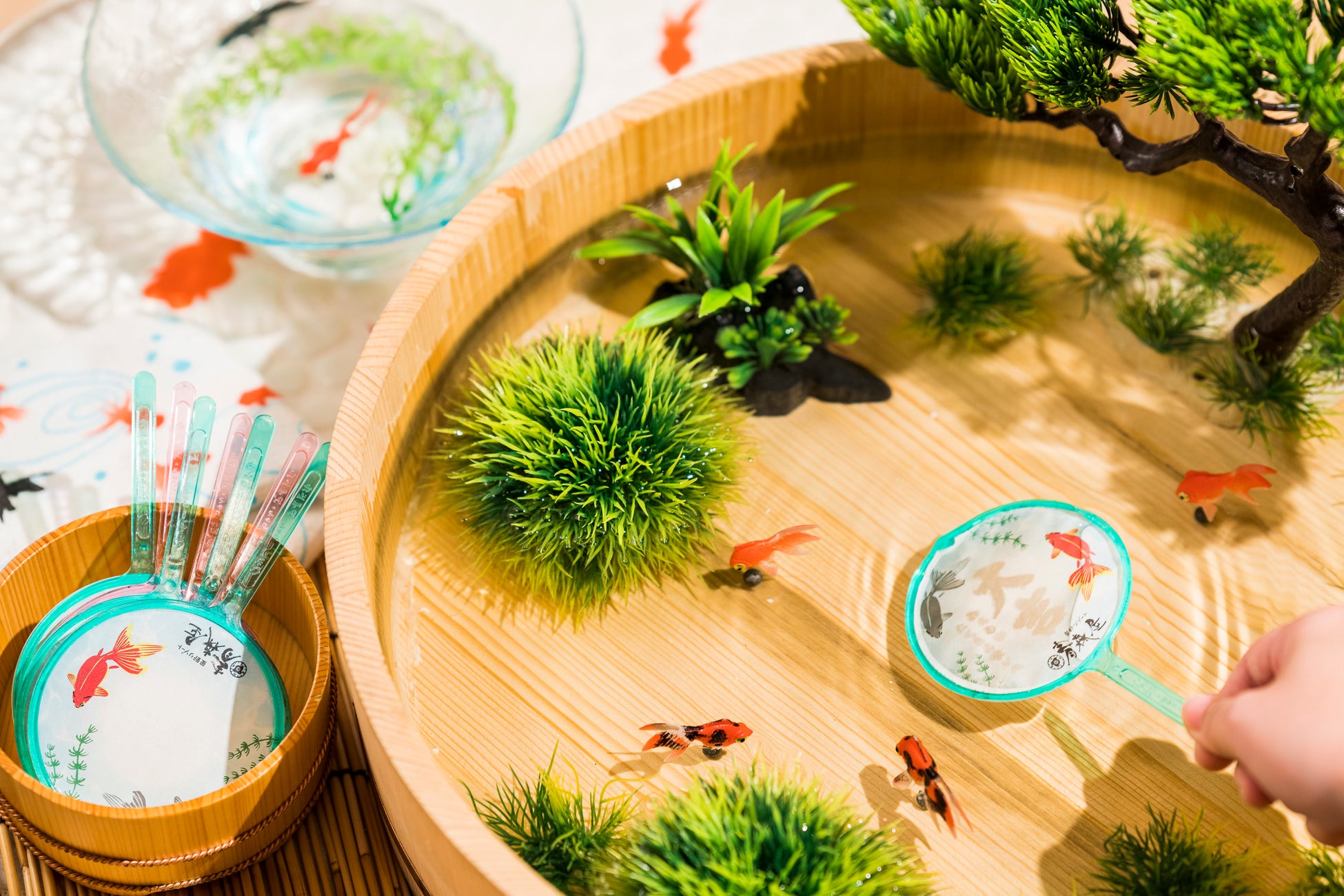青森屋では、季節ごとに祭り気分を満喫できるさまざまな体験を用意しています。特典の「ポイみくじ」は、ポイの形をしたおみくじを金魚すくいの要領で水に浸すと、運勢と滞在の指南が浮かび上がるのが特徴です。おみくじは記念に持ち帰ることができます。
