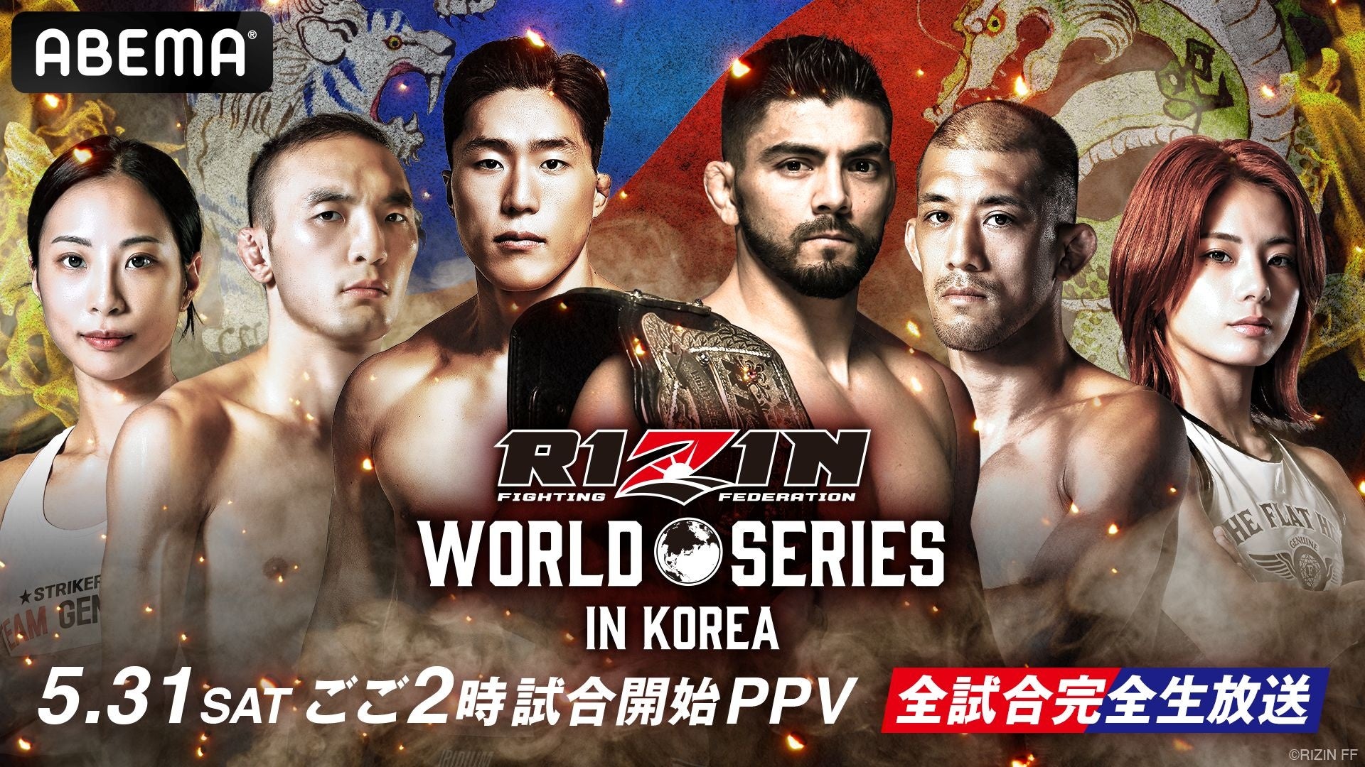 新しい未来のテレビ「ABEMA(アベマ)」は、日本最高峰の格闘技イベントRIZINが2025年5月31日(土)に韓国・仁川にあるPARADISE CITYにて開催する『RIZIN WORLD SERIES in KOREA』を、「ABEMA PPV(アベマ ペイパービュー)」にて全試合生放送いたします。
