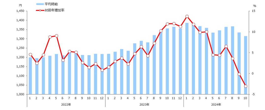 1.職種別平均時給(2024年10月)
