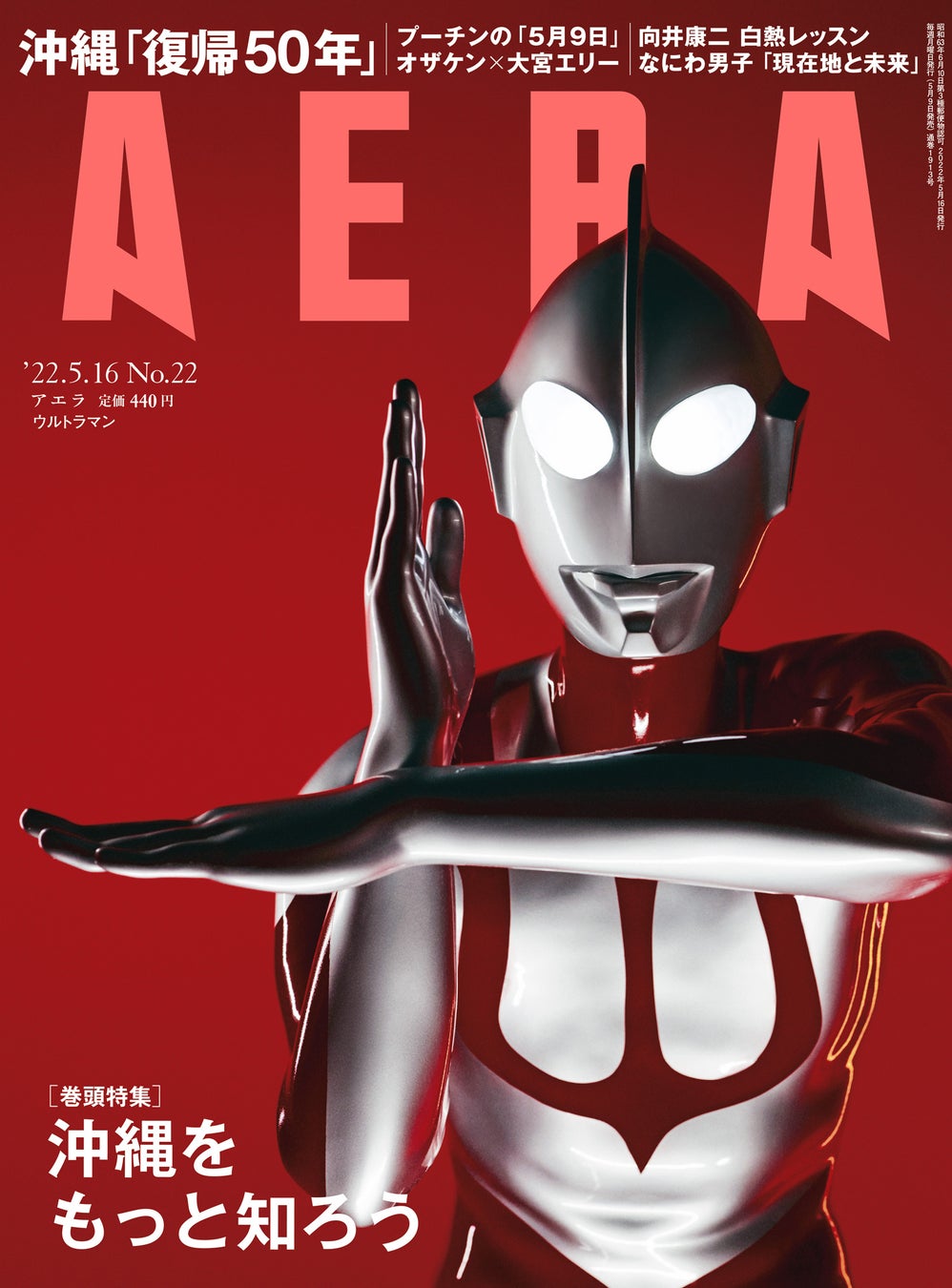 5月9日発売のAERA5月16日号は、「沖縄をもっと知ろう」と題し、5月15日に日本復帰50年を迎える沖縄の歴史やいま抱える課題を多角的に特集します。ウクライナ侵攻が沖縄に与える影響についての記事や、「復帰っ子」と呼ばれるガレッジセール・ゴリさんのインタビューもあります。AERAの表紙は通常、「旬な人」ですが、今号に登場するのはウルトラマン。映画「シン・ウルトラマン」の公開が間近に迫るなか、ウルトラマンはいままさに旬。その美しい姿を本誌表紙フォトグラファー・蜷川実花が撮影しました。好評月2回連載「向井康二が学ぶ 白熱カメラレッスン」は、新たに濱田英明さんを先生に迎えてのレッスン。写真を撮るうえで重要な「視点」の取り方にフォーカスした撮影に挑戦しています。さらに「なにわ男子」のメンバーのうち4人が「現在地と未来」について語ったインタビューも必見。本誌が力を入れるウクライナ報道は、プーチン大統領がこだわる5月9日の「対独戦勝記念日」について。その日が持つ意味を詳報します。