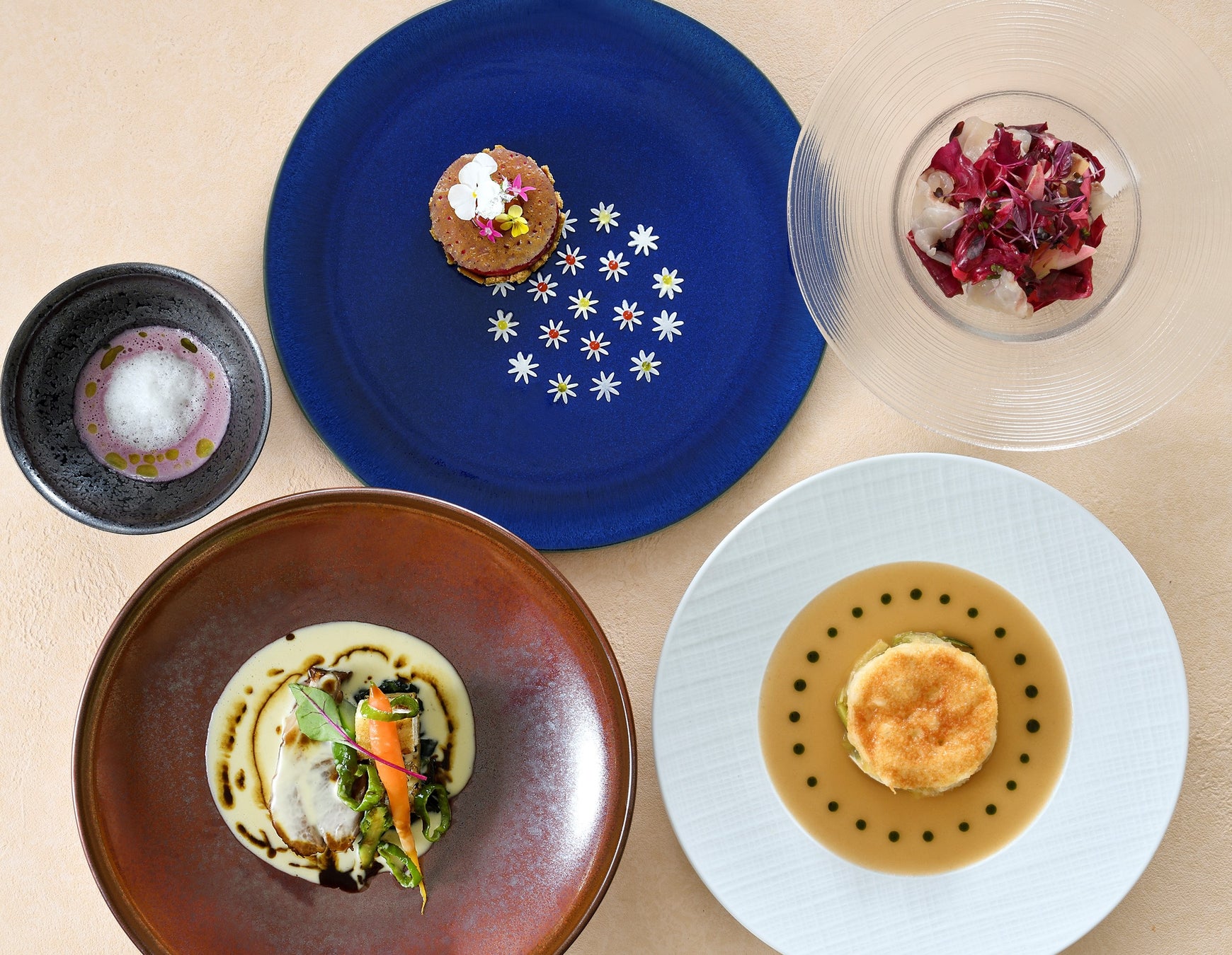 「En et RAY (アネレイ)」は、コク深いクリームソースとイベリコ豚の上質な脂が口の中でとろける「イベリコ豚のラグー 焼きリゾットと万願寺とうがらし」など、素材本来の旨みを引き立たせる繊細なソースとの一体感を演出するカジュアルフレンチ全5品のコースをご用意します。