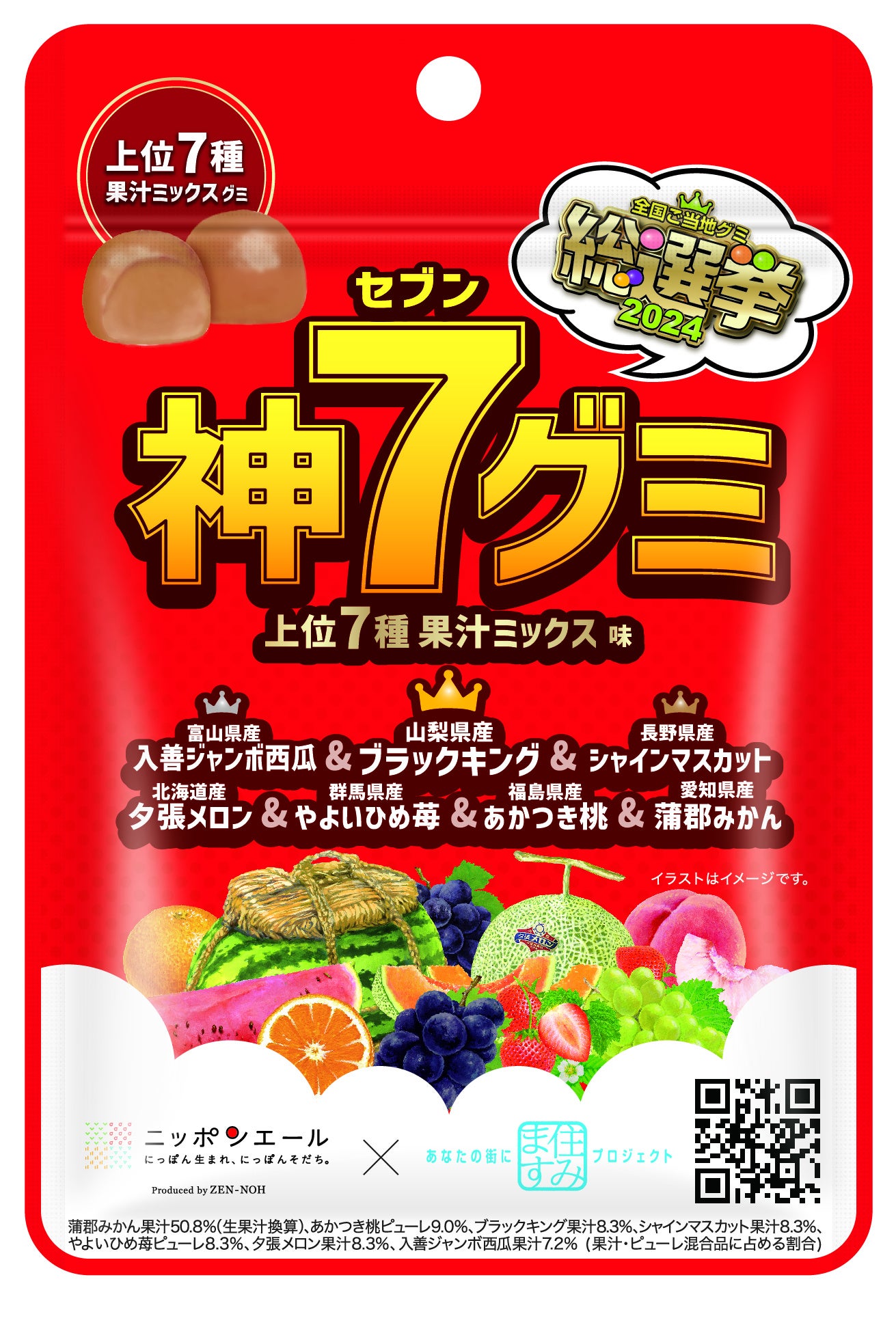 2023年のニッポンエールグミ総選挙の人気投票上位7品の果汁をミックスしたグミ。