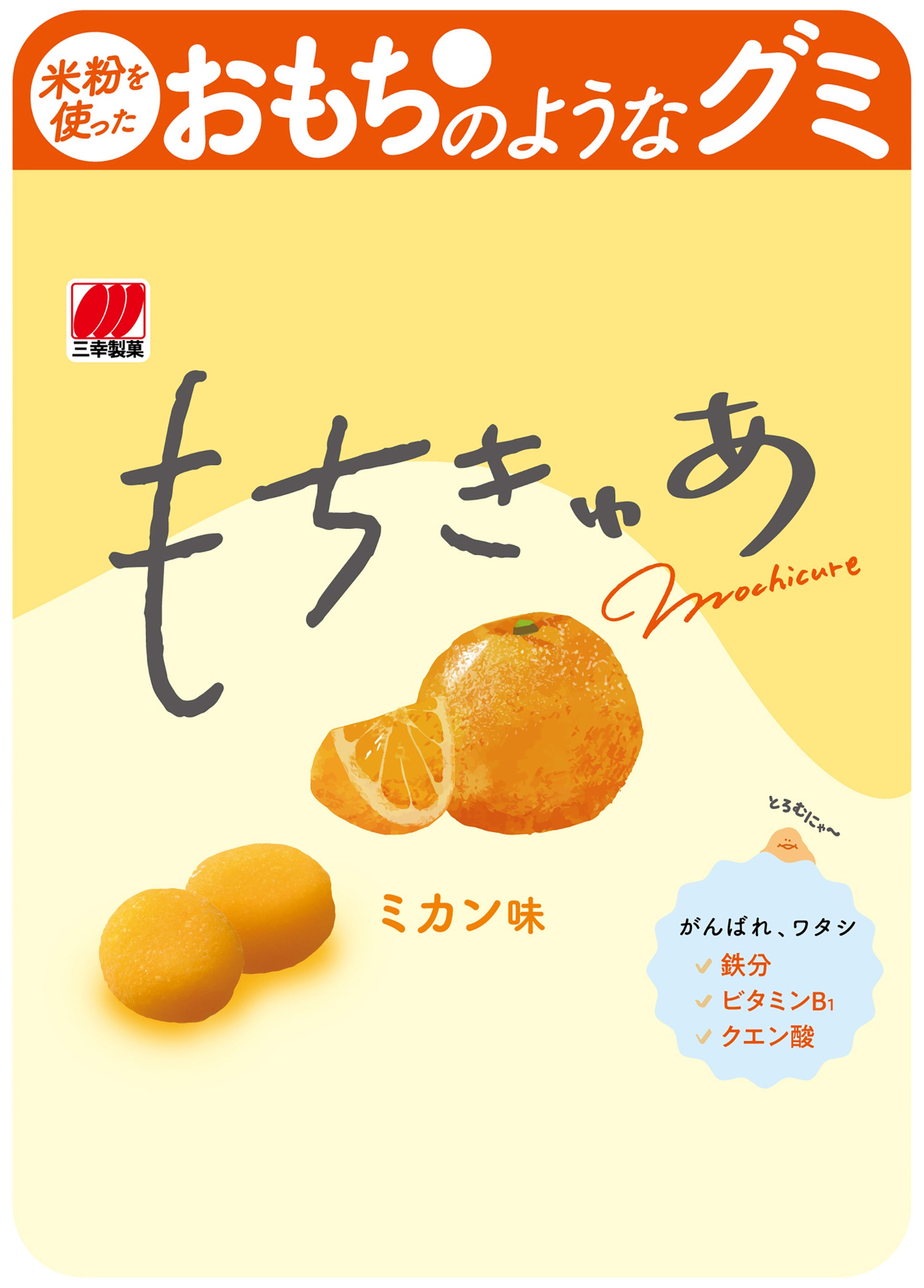 ●新商品/もちきゅあミカン味(三幸製菓) 206円 (入荷次第順次発売)
