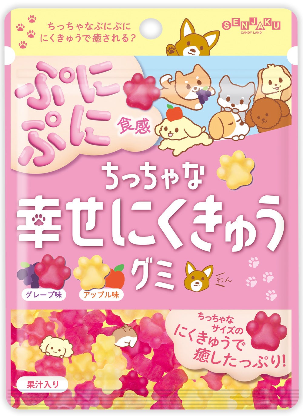 ちっちゃいオリジナルの肉球型がかわいいグミ。ぷにぷに食感(触感)に癒される。