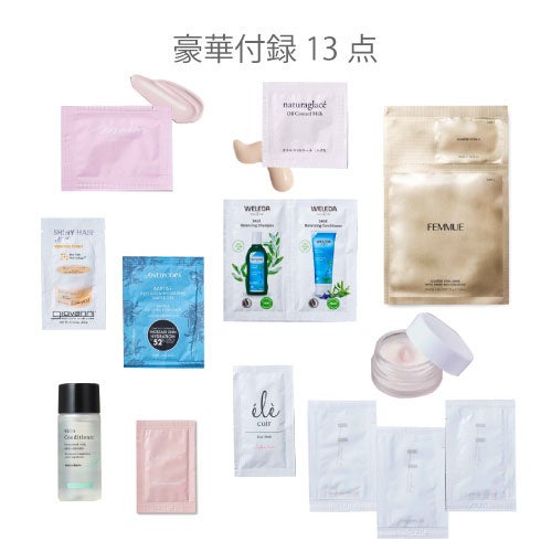 - 新作シートマスクや人気アイテムのミニサイズを含めた、豪華な全13点の付録付き