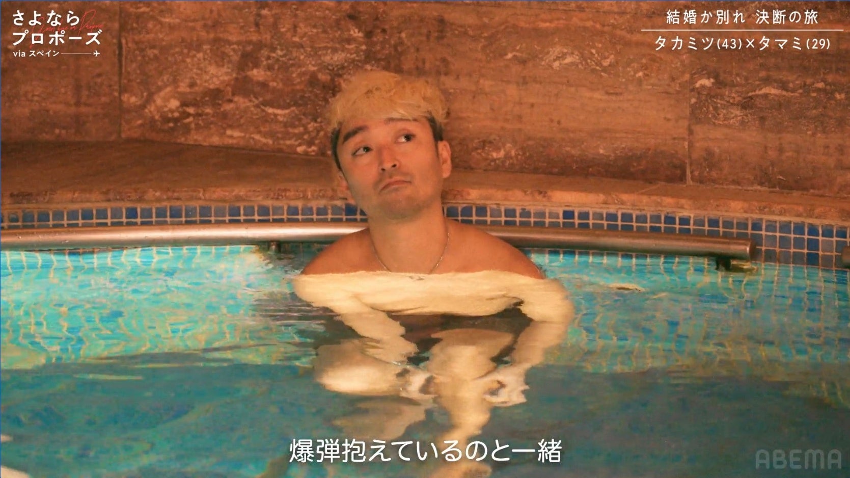 その後、スパを訪れた2人。タマミはタカミツが自由に海外に行っていることについて「出産のときもやるのか?」と指摘。タカミツは「流石に控える、TPOに合わせて…」と言いますが、タマミは「こんなに自由な人だから本当に実行できるのか。爆弾抱えているのと一緒」と切り込みます。タカミツは「結婚って紙切れ一枚で繋がっている今までと変わらない生活、ただそれだけだと思うよ」とタマミを諭しますが、タマミは「紙切れ1枚っていうけどその前にも婚前契約書っていう紙切れ1枚をさらに出そうとしているじゃない」と衝撃の発言を披露。去年の夏、今後についての話し合いをしていた際に「お別れしたとき、スムーズに別れられるように婚前契約書を書きましょうって言われたんですよ」「今まで信じ合っていた仲だと思っていたからショックだった」と当時について語り、スタジオからも「なんだそれ」「ちょっとどうなの…一筋縄ではいかない男性よな」とのツッコミが入りました。
