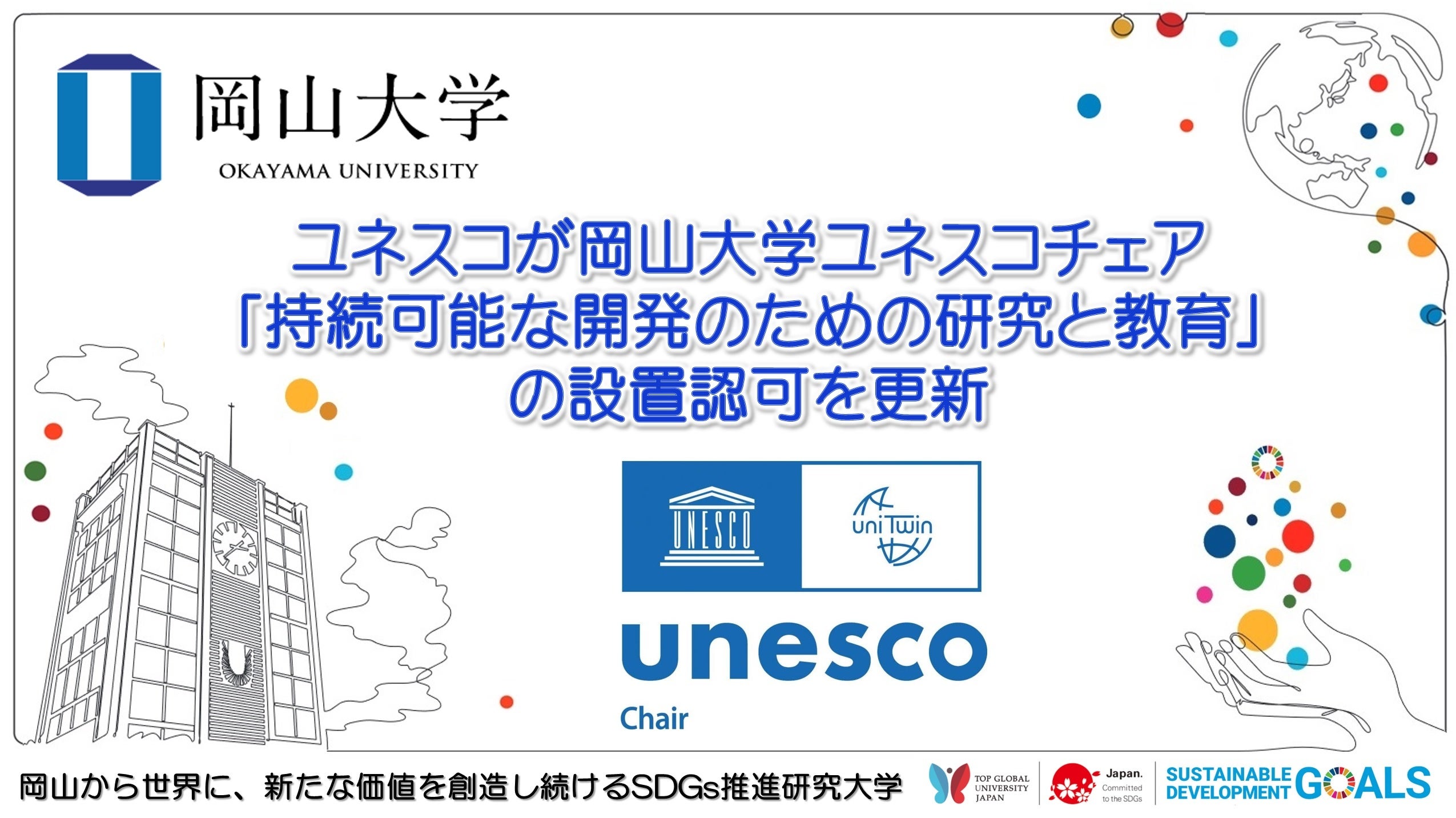 【岡山大学】ユネスコが岡山大学ユネスコチェア「持続可能な開発のための研究と教育」の設置認可を更新
