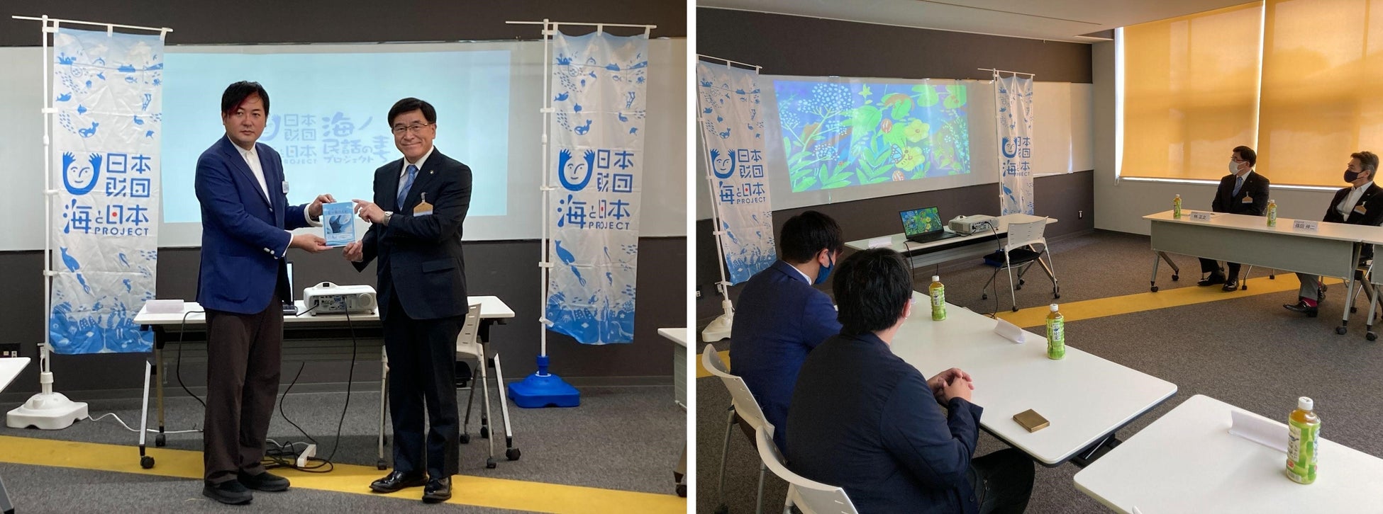 海ノ民話のまち 富山県氷見市のアニメ「虻が島の大蛇」が完成!認定委員長が林正之市長を表敬訪問し完成アニメを贈呈