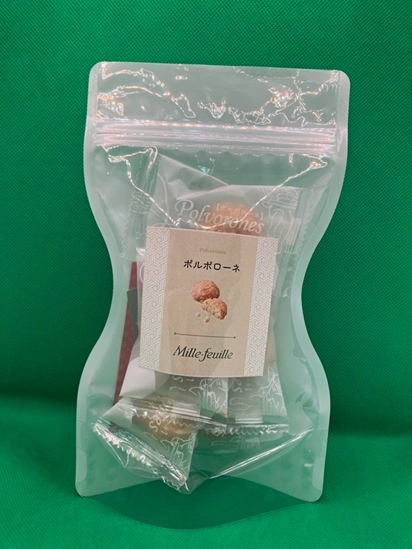 スペインアンダルシア地方に伝わる伝統菓子を、独自のレシピでアレンジし、サクッとした後にお口の中でほろっと崩れる不思議な食感がおすすめです。食べながら、「ポルポローネ」と3回唱えると幸せになれるという言い伝えがあるそうです。 ㈱ミルフィーユ