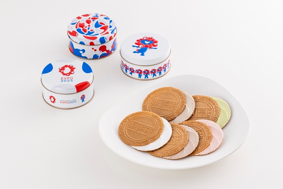 薄く焼き上げた生地の「ほろほろ感」と、お召し上がりいただいた後に生地とクリームがスーッと溶けていく感覚が特徴の大阪・関西万博デザインのミニサイズのゴーフルです。 ㈱神戸風月堂