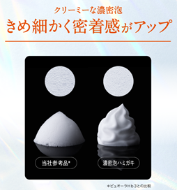 この秋新発売する『PureOra36500 濃密泡ハミガキ』は、就寝前に使うと、濃密パック泡がすみずみまで届いてハグキを包み込み、寝ている間も薬用成分がじっくり効く、泡状のハミガキです。クリーミーな濃密泡で密着感がアップ(ピュオーラHb3との比較)。ハグキを強くして歯周病*1 予防するほか、ハグキ由来の口臭も防ぎます。