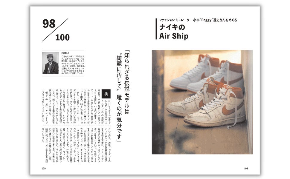 | ニート デザイナー 西野大士さん/ノンネイティブ デザイナー 藤井隆行さん/原宿キャシディ 店長 八木沢博幸さん/漫画家 渋谷直角さん/レショップ コンセプター 金子恵治さん/sio オーナーシェフ 鳥羽周作さん/アンドワンダー デザイナー 池内啓太さん/ヒステリックグラマー デザイナー 北村信彦さん/スタイリスト 小沢 宏さん/ファッション キュレーター 小木〝Poggy〞基史さん/ビームス 代表 設楽 洋さん/漫画家 江口寿史さん ほか100名掲載 |