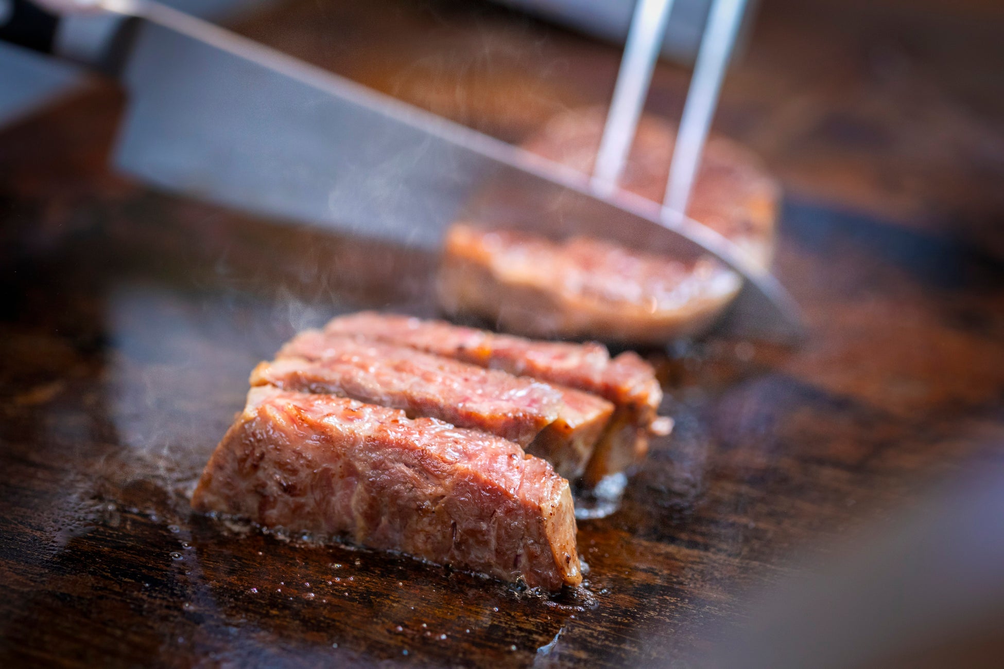 特に大人気の牛肉のステーキは、調理スタッフが目の前で焼き上げます!