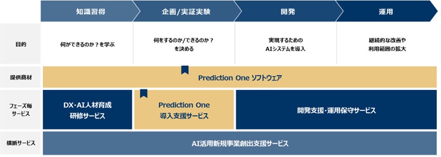 (*1)「Prediction One」は製品上でのサポートに加えて、導入企業のAI活用フェーズや課題に合わせて、導入支援サービスやDX/AI人材育成研修サービス等を用意しています。