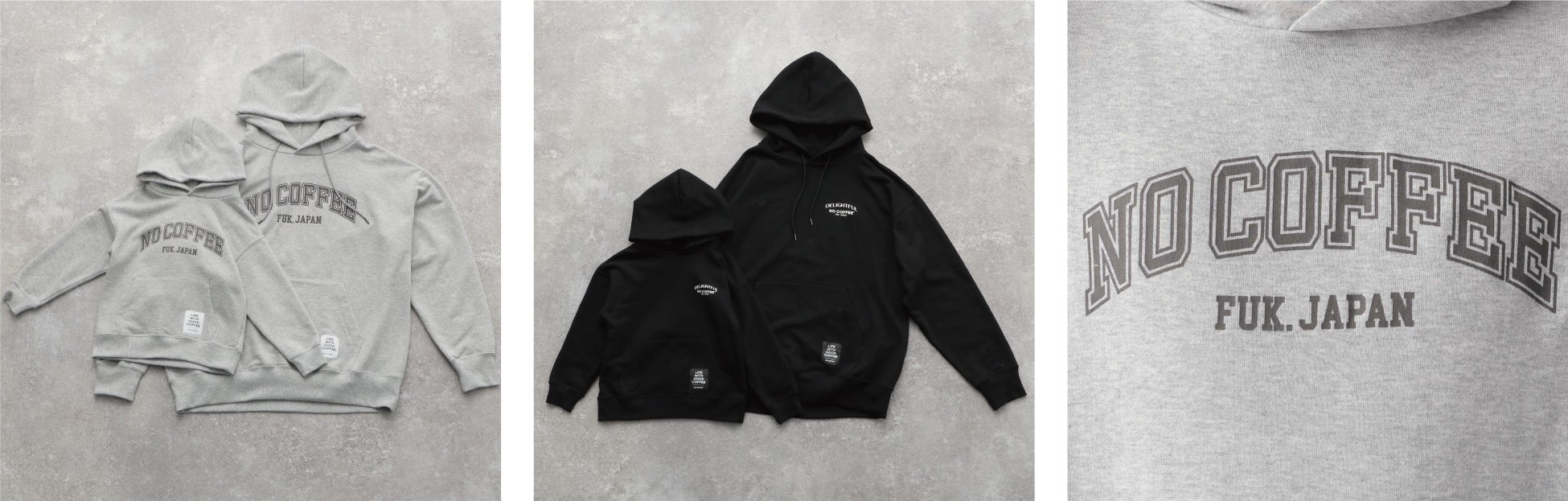 今回のコラボも、シンプル且つ洗練されたアイテムが勢揃い。カレッジ風のNO COFFEEロゴプリントや、実際の店舗のメニュー表をモチーフにデザインしたパーカーなど、グローバルワークでしか手に入らないラインアップ。いずれも裾部分にはピスネームが付いた、スペシャルアイテムです。