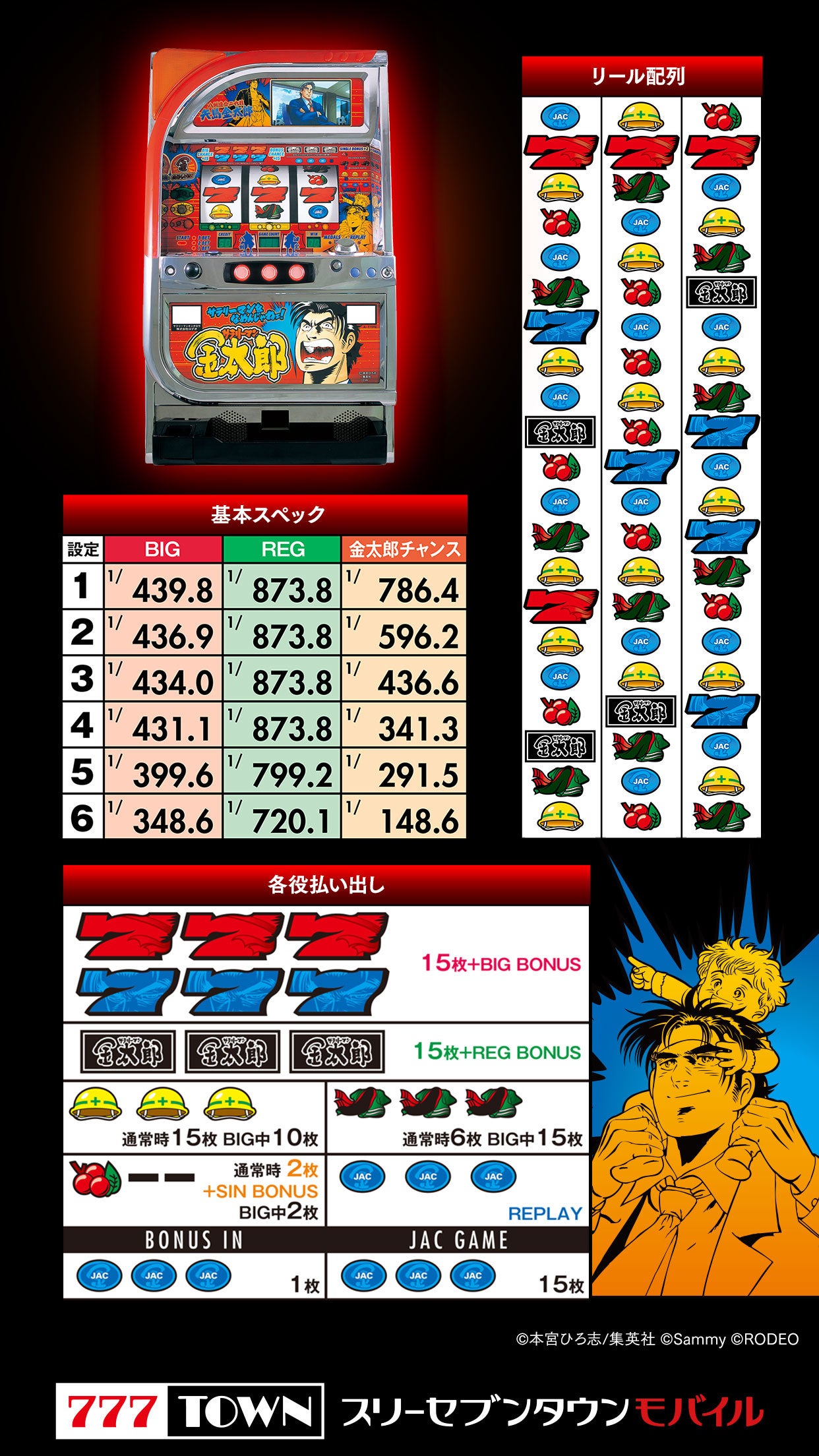 振り分け確率、約4%のAT「金太郎chance」SB100回を目指し、777TOWN mobileで思う存分お楽しみください!