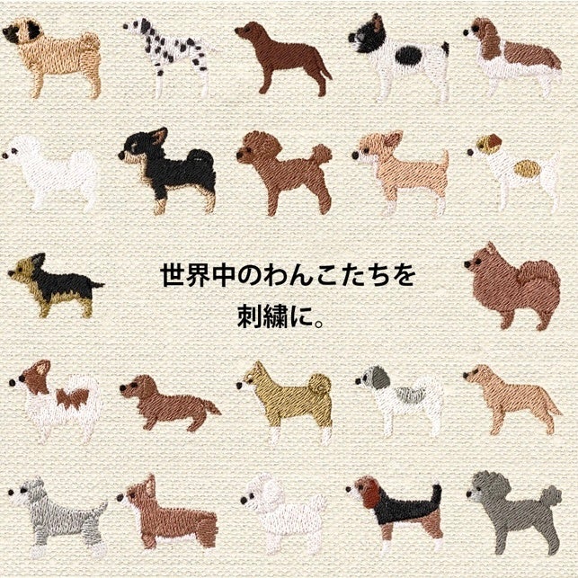 特徴は我が家の愛犬と同じ「犬種」と「毛色」のまさしく『うちのこ』が見つかるということ。200種類以上と言われている犬種のすべてを刺繍で再現することを目標にスタートしたブランドです。