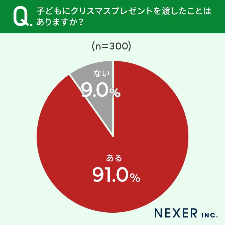 91%とほとんどの方が、子どもにクリスマスプレゼントを渡したことが「ある」と回答しています。