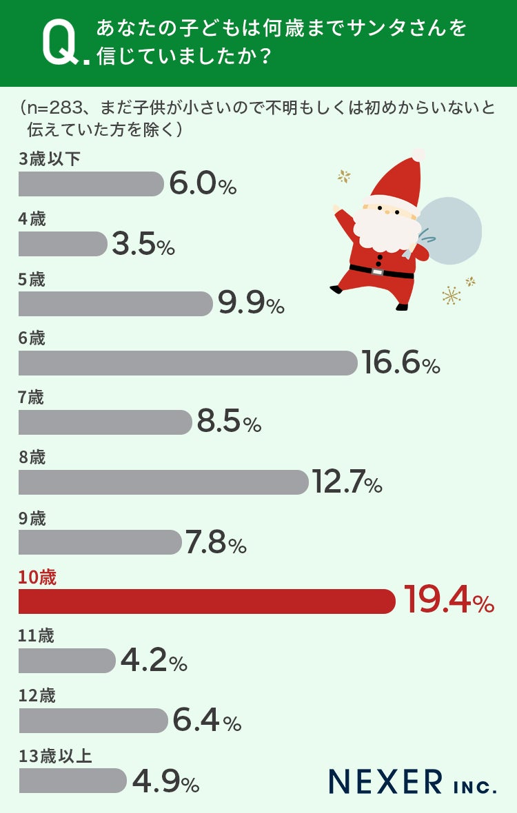■19.4%が「子どもが10歳までサンタさんを信じていた」