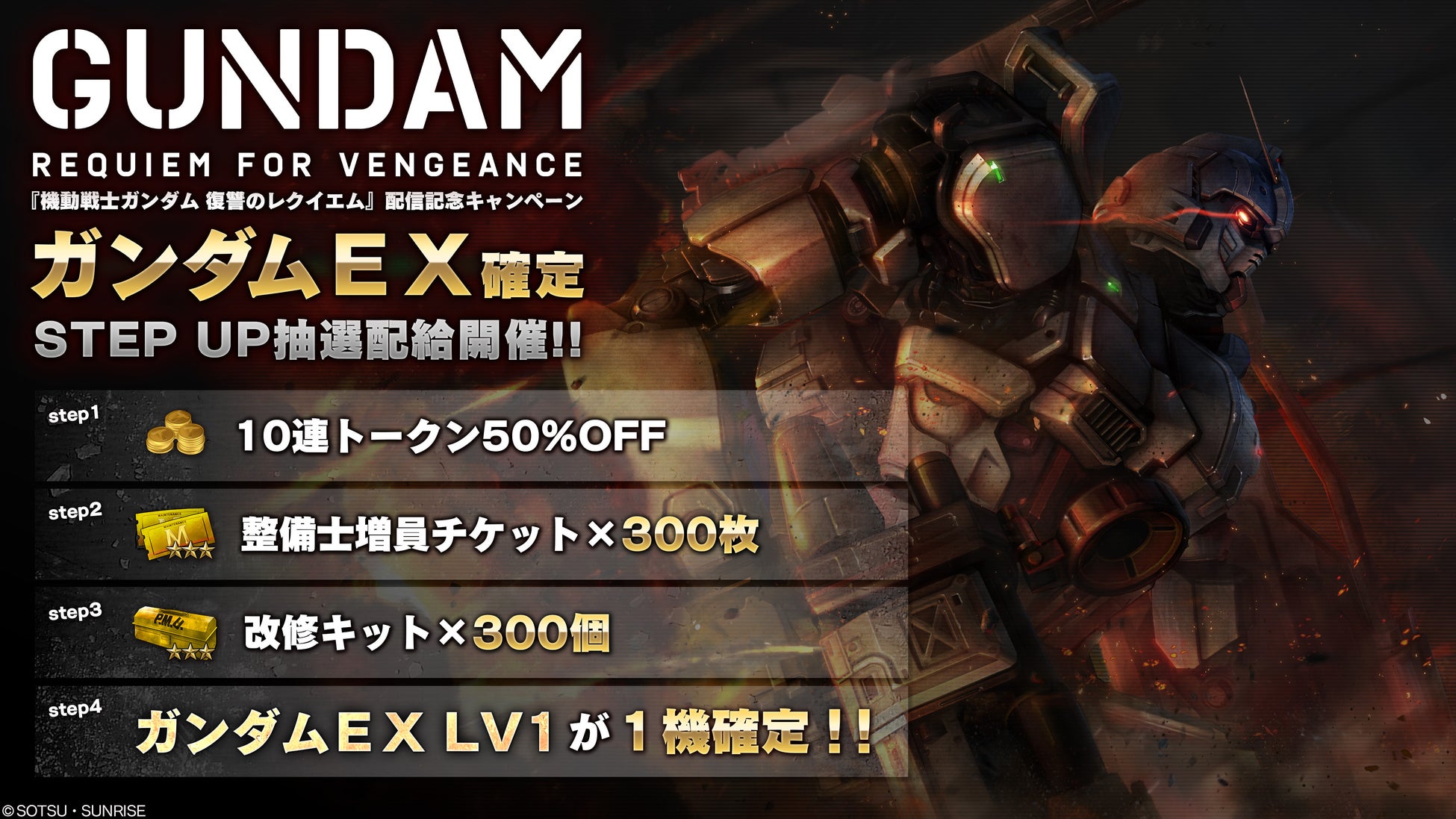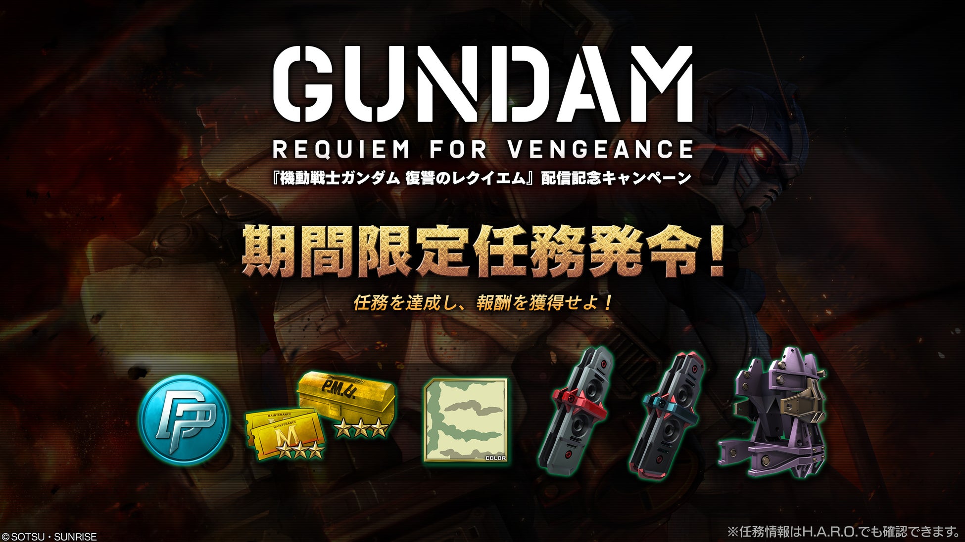『機動戦士ガンダム 復讐のレクイエム』より新機体「ガンダムEX」が登場する他、毎日1回要請可能なMS1機確定抽選配給や、期間限定任務を実施いたします。