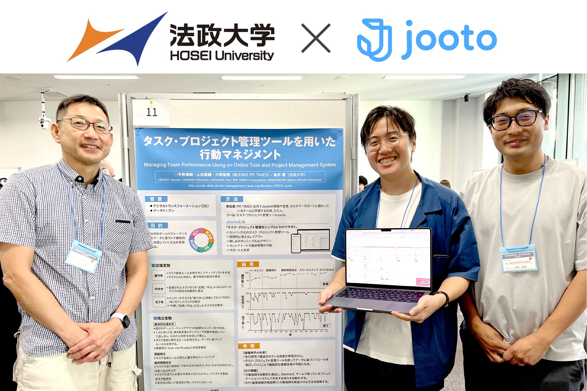株式会社PR TIMES(東京都港区、代表取締役:山口拓己、東証プライム:3922)が運営するタスク・プロジェクト管理ツール「Jooto(ジョートー)」は、DX(デジタルトランスフォーメーション)を妨げる運用問題の解決を目的に、行動分析学の専門家である法政大学の島宗理教授と共同で組織行動マネジメントに関する研究を行い、2024年9月13日(金)~15日(日)に開催された日本行動分析学会で研究成果を発表しました。