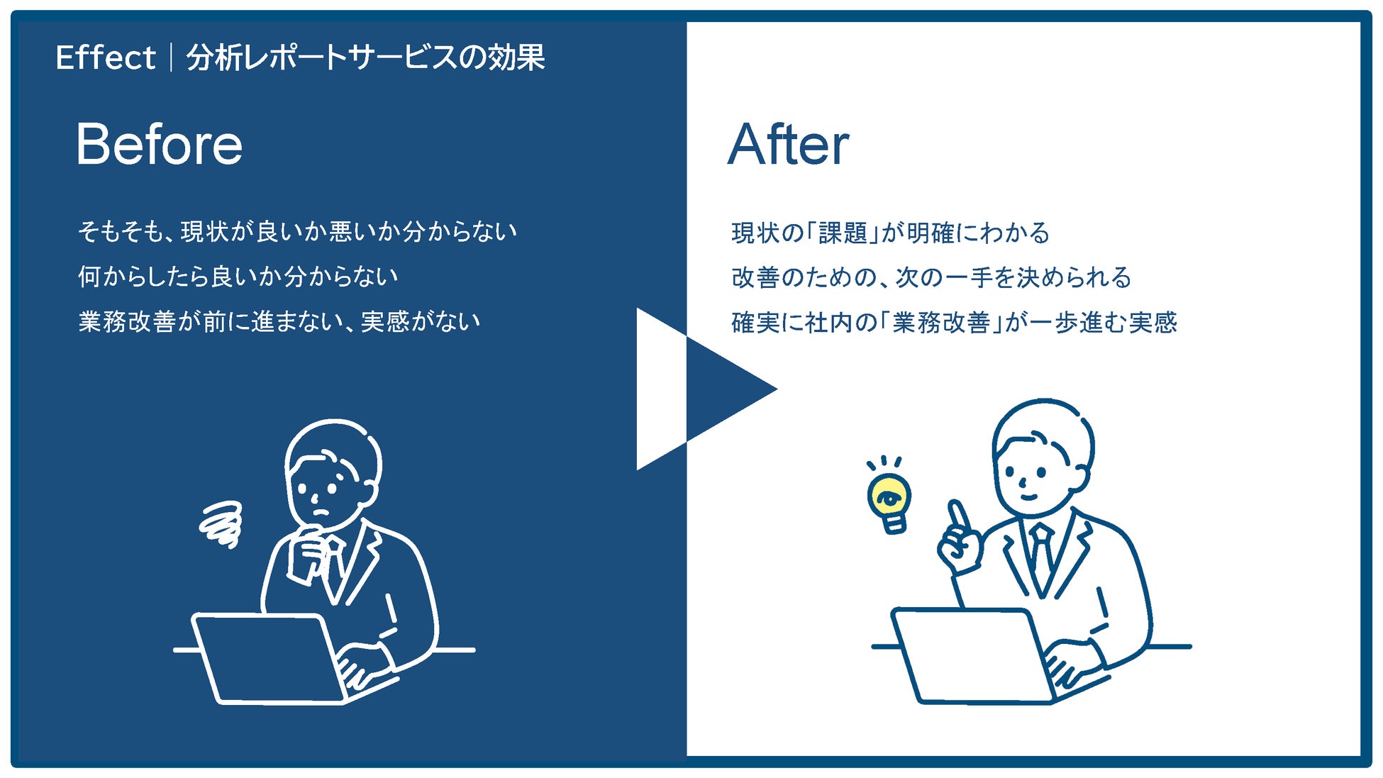 また、本研究で明らかになった業務改善に有効な3つの指標を可視化する分析レポートサービスの提供を開始しました。導入支援の場面でも、この指標を用いた業務改善の提案を強化してまいります。