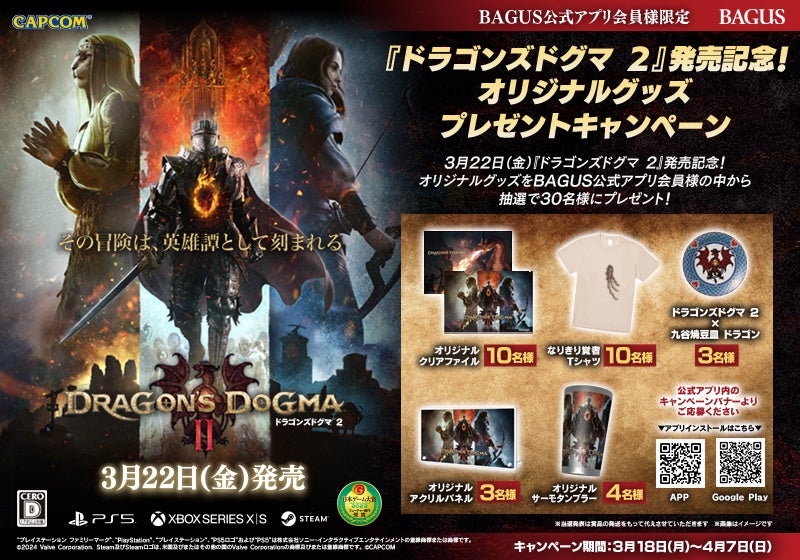 3月18日(月)よりBAGUS公式アプリ会員様を対象に、ゲーム『ドラゴンズドグマ 2』(3月22日発売予定)発売を記念したプレゼントキャンペーンを実施します。