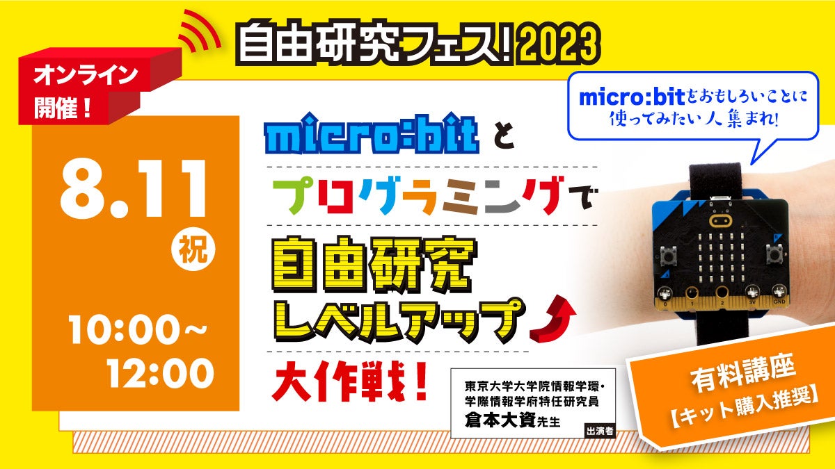 小型コンピューター「micro:bit」に搭載されているセンサーと、プログラミングを活用して、キミの自由研究をサポートするアイデアを出し合うスペシャルワークショップです。実験、工作、自然観察などに応用すると、さらに充実した自由研究に!?