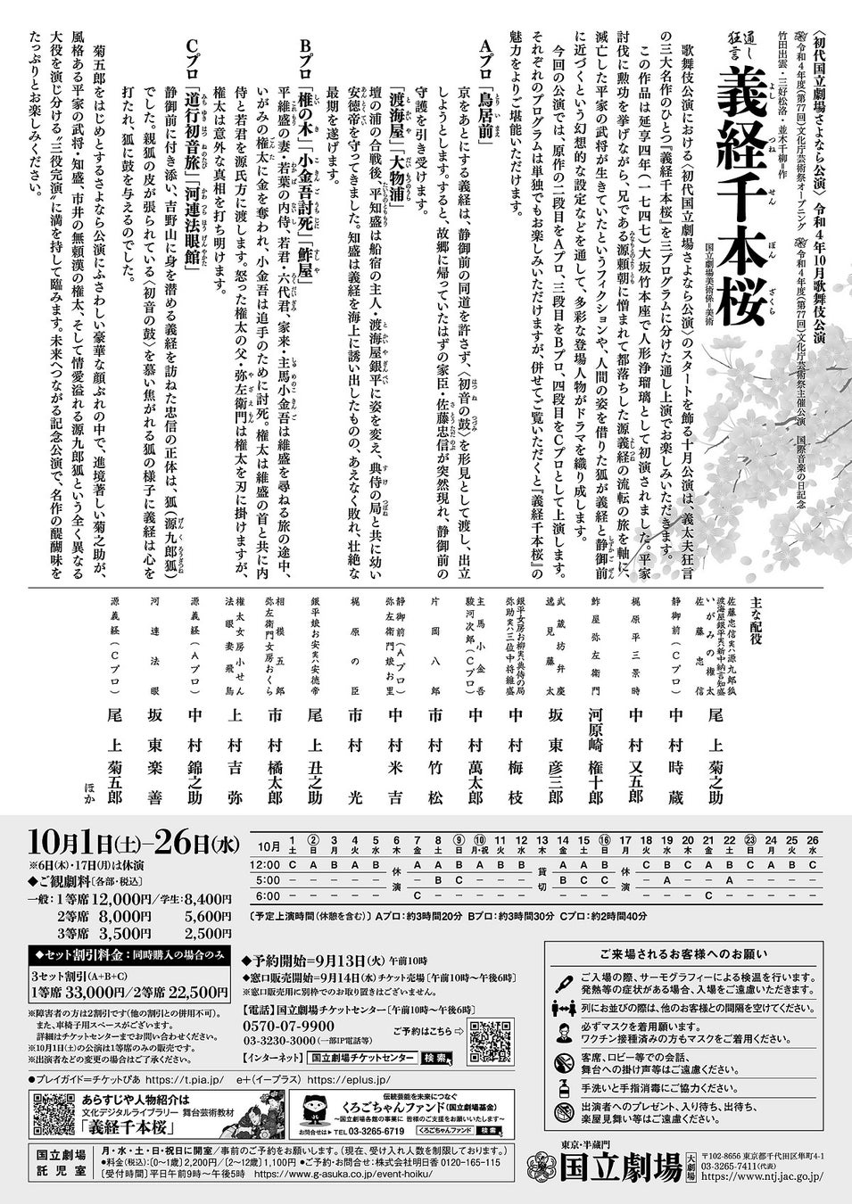 「初代国立劇場さよなら公演」 令和4年10月歌舞伎公演『通し狂言 義経千本桜』上演決定 カンフェティでチケット発売