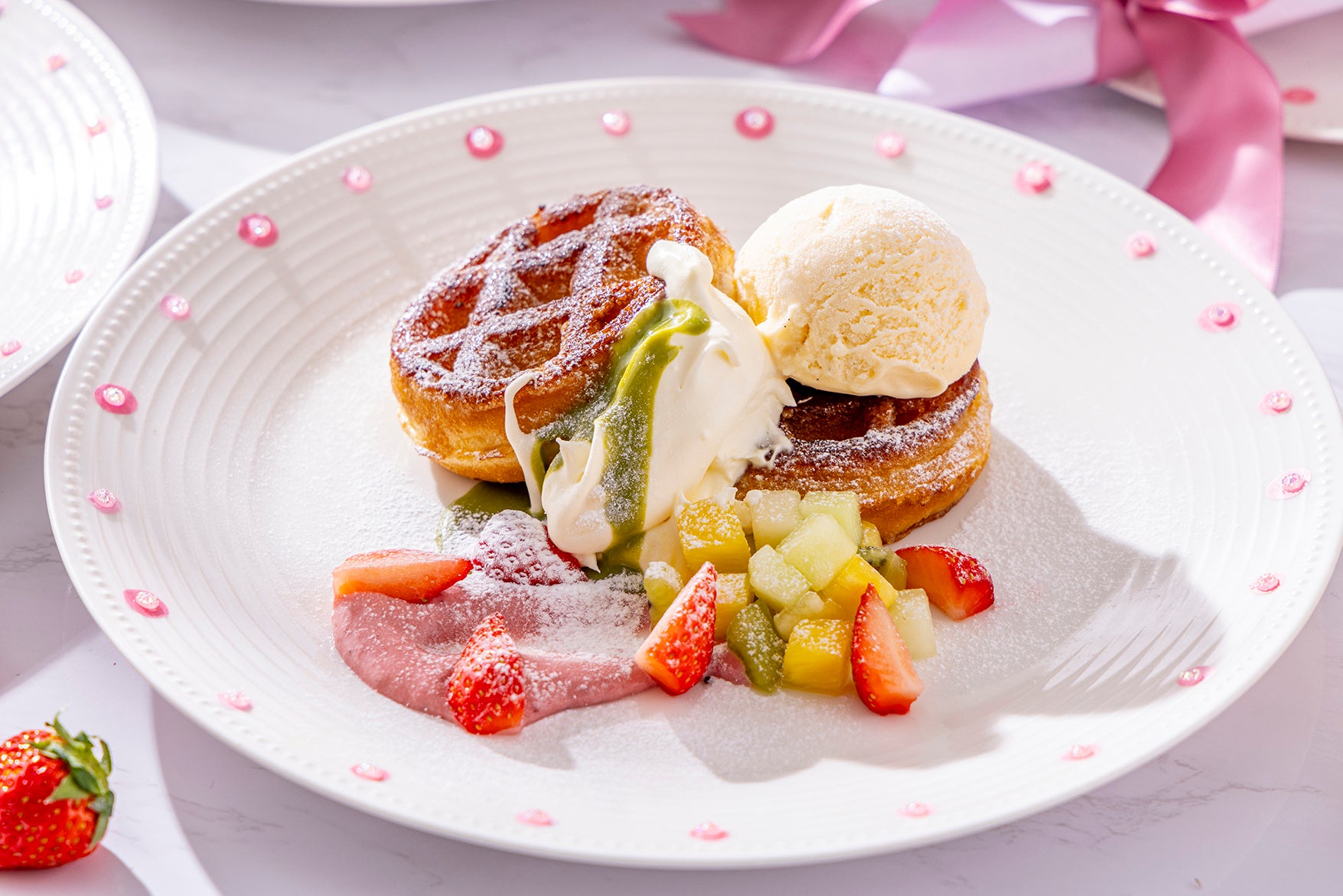 また、TV情報番組で紹介され、さらに人気上昇の「フレンチトースト」は、今フェアではホイップクリームの他、ストロベリークリームソース、抹茶アングレーズソース、さくら餡、あんこを添え、和風アレンジもできる一品です。いつもと違う味と見た目もお楽しみいただけます。