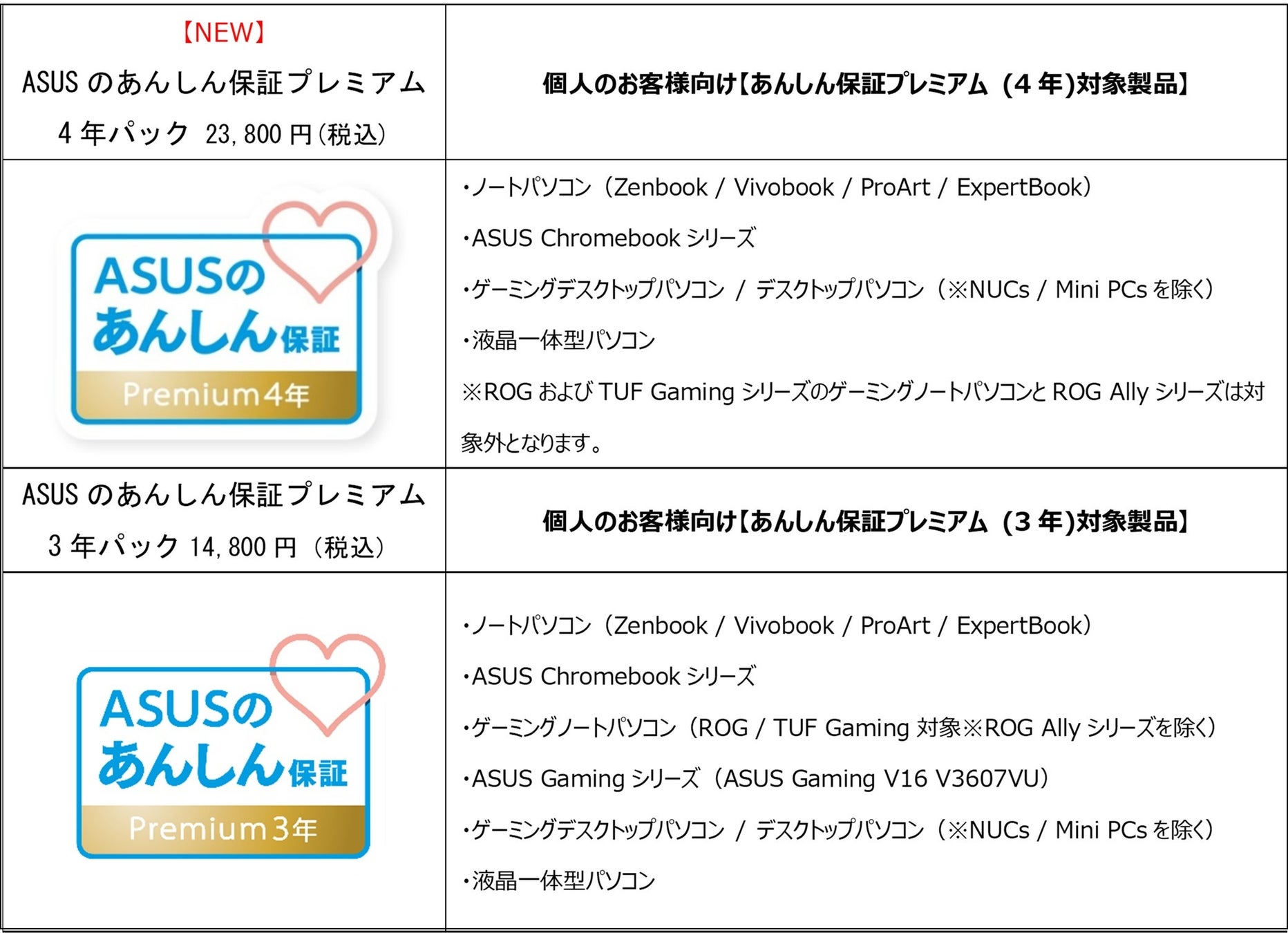 【ASUSおしらせ】故障原因不問でも迅速なサポートが可能な「ASUSあんしん保証プレミアム」に、4年制大学、専門学校でも安心の4年パックを追加