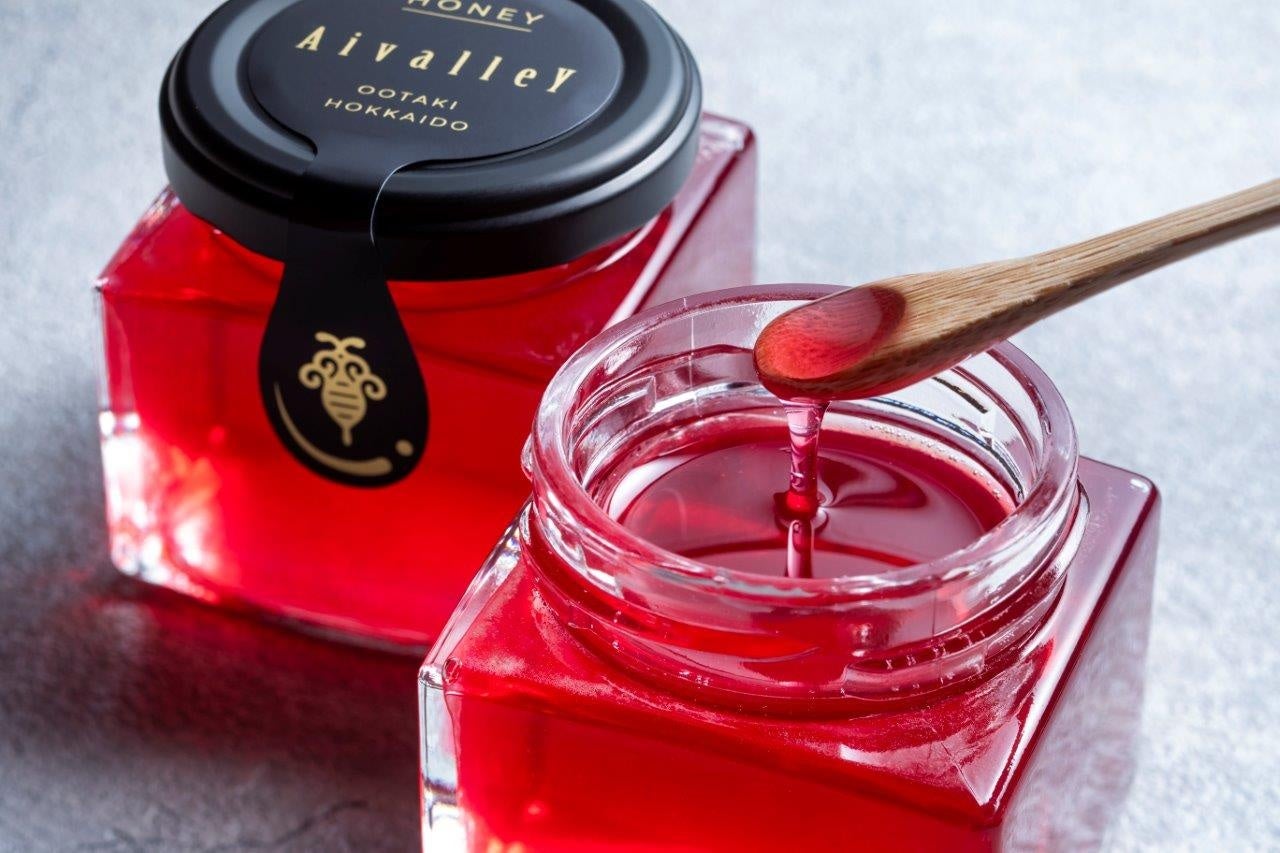 大滝産アロニアとはちみつを合わせたルビーのように美しい深い赤色が特徴のはちみつです。