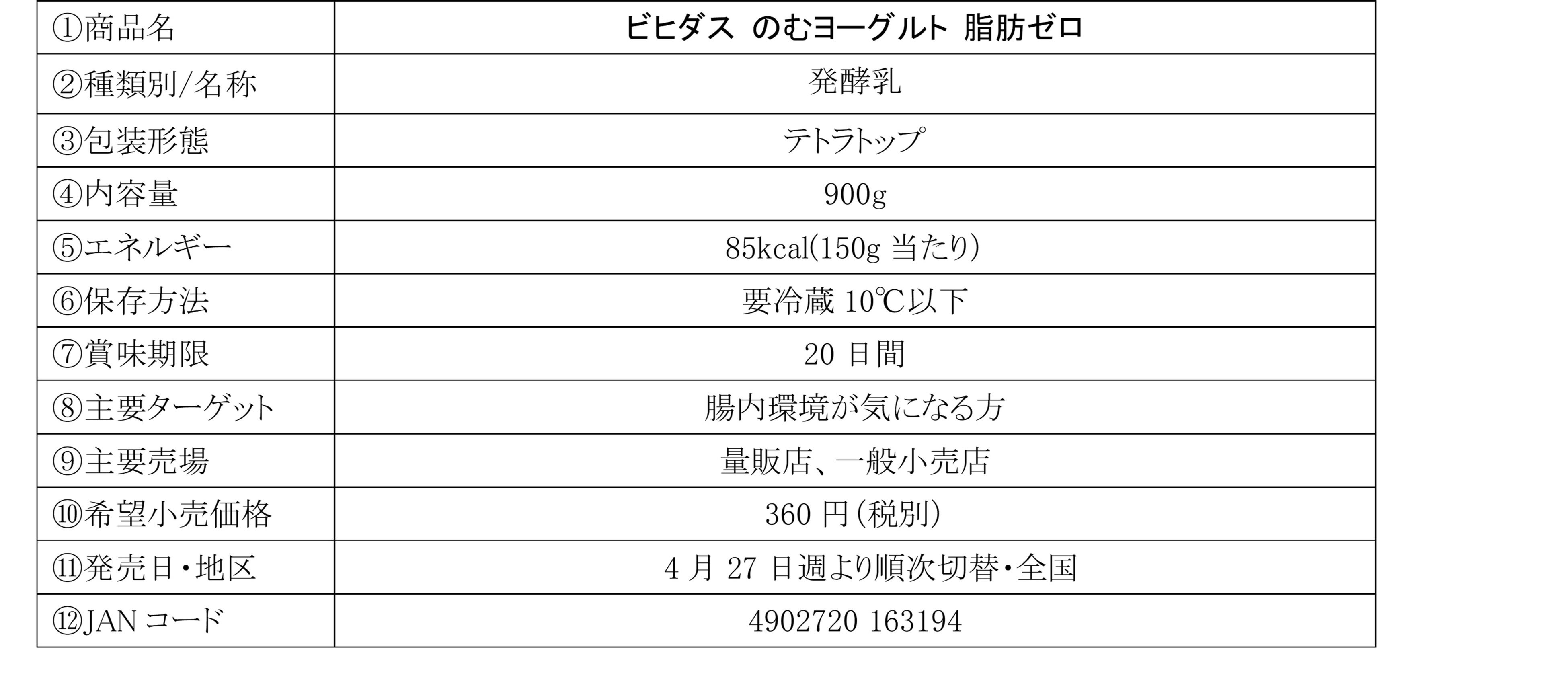 「ビヒダス のむヨーグルト 脂肪ゼロ」は、酸味を抑えた、乳のまろやかな味わいが特長の大容量(900g)のむヨーグルトです。脂質を気にしている方も毎日続けやすい脂肪ゼロタイプです。この度、生きて大腸まで届き、腸内環境を整える機能が報告されている『ビフィズス菌 BB536』を機能性関与成分とした機能性表示食品としてリニューアル発売いたします。味わいはそのままに、おなかの健康価値を強化することで、お客さまのニーズにより一層応えてまいります。「ビヒダス のむヨーグルト 脂肪ゼロ」をお召しあがりいただき、腸のケアにお役立てください。