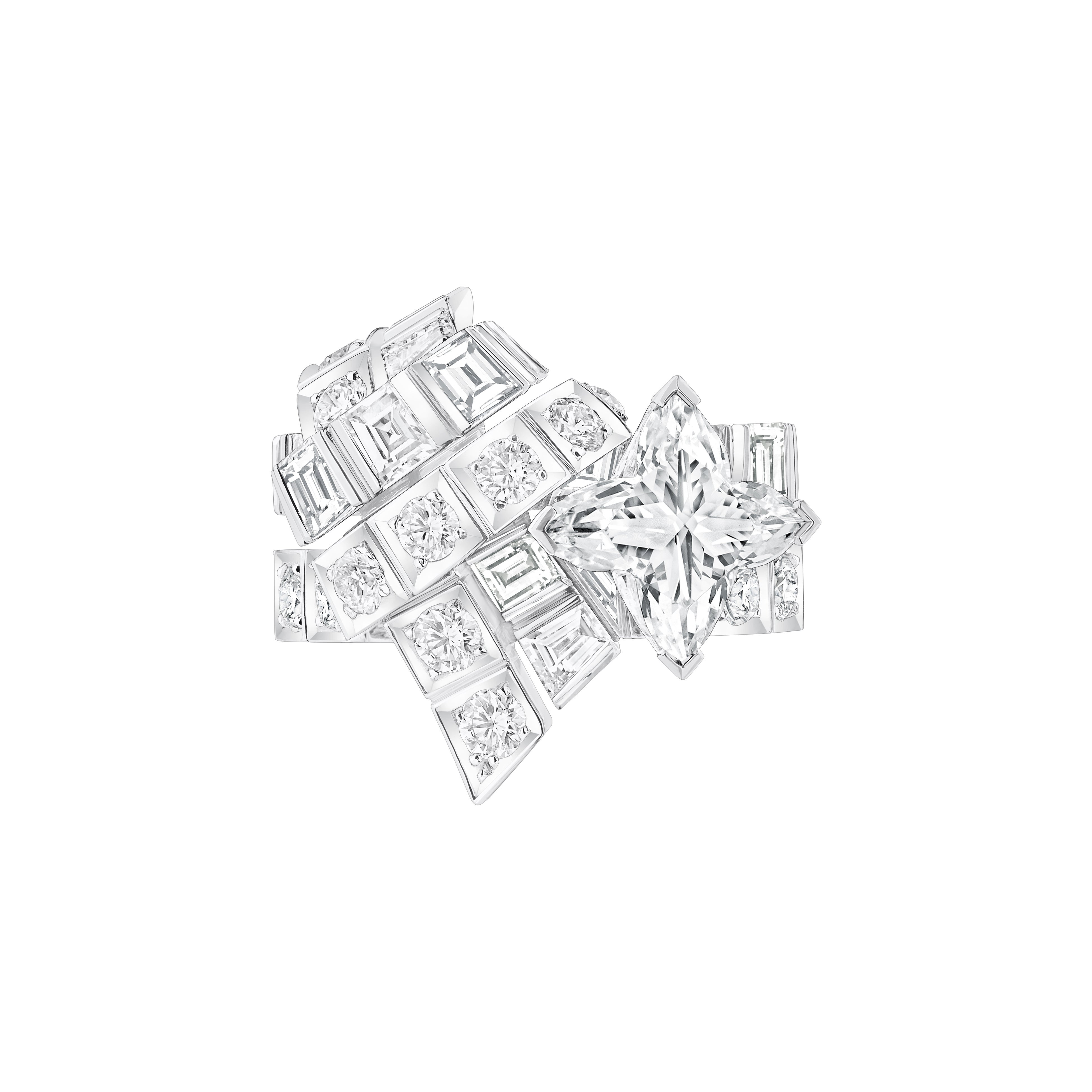 また、エマ·レアードは「The Brutalist(原題)」のフォトコールに、2025クルーズ·コレクションのルック55のグレーのオフショルダーストラクチャードトップにバロンパンツ、ブラックレザーベルト、レザーハイブーツを合わせ、メゾンのファインジュエリー コレクションより、ホワイトゴールドとダイヤモンドのリング「タンブラー」と、ダイヤモンドをあしらったスタッドイヤリング「LV ヴォルト」を着用しました。
