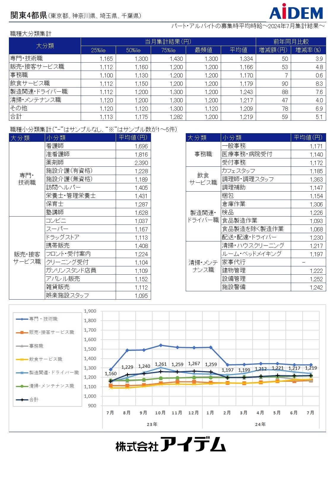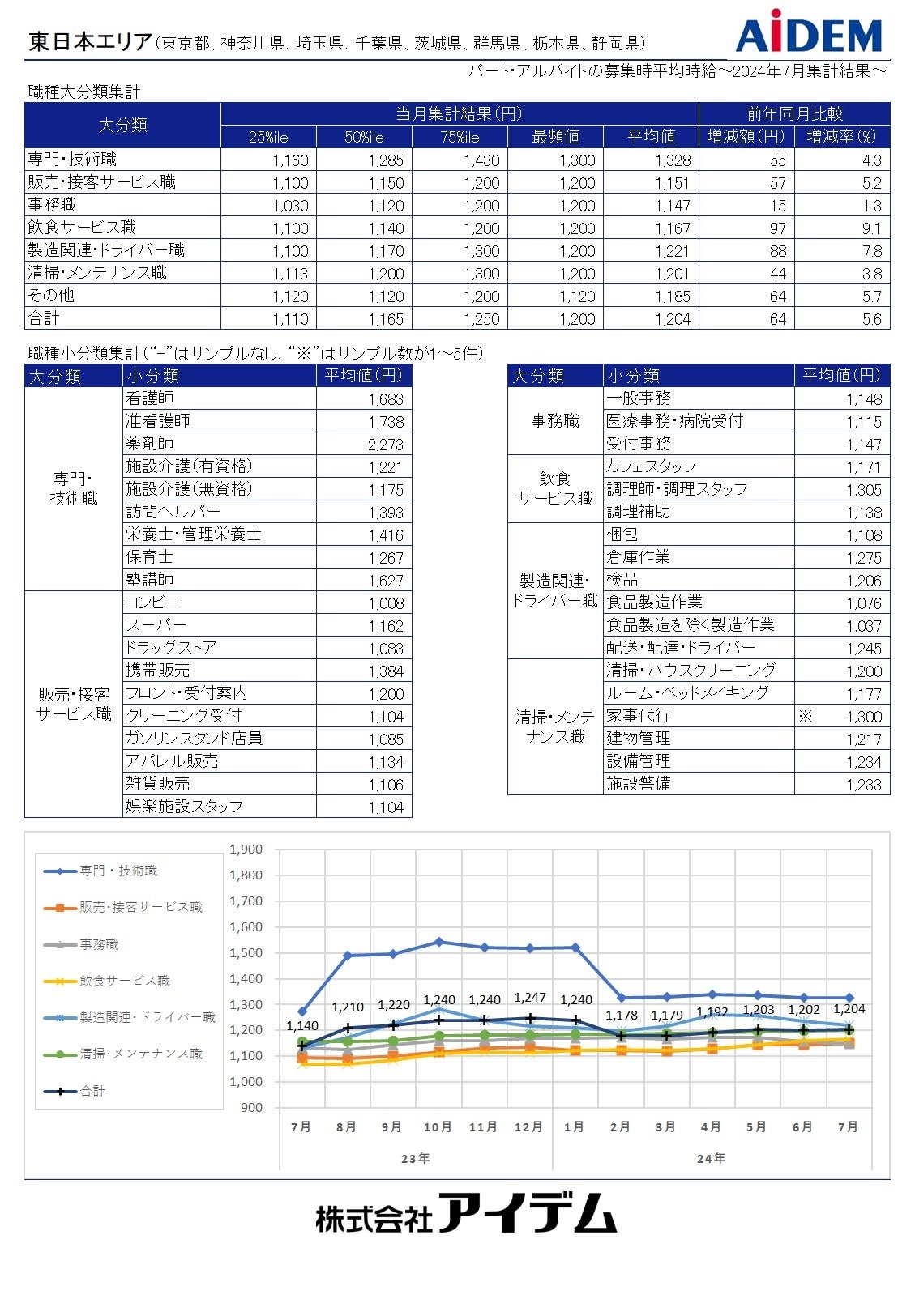 総合人材情報サービスの株式会社アイデム(本社:東京都新宿区 代表取締役社長:椛山 亮)は、求人メディア『イーアイデム』や採用ホームページ構築サービス『Jobギア採促』を利用して公表された求人情報から、2024年7月のパート・アルバイト募集時平均時給を集計いたしました。