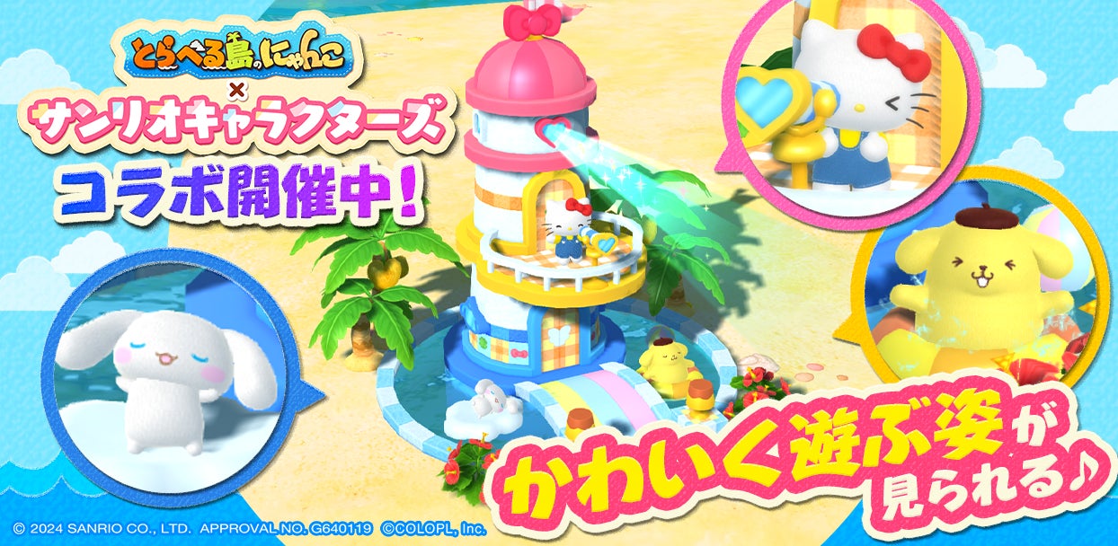 本日3月7日(木)15:00より、初コラボイベント「とらべる島のにゃんこ×サンリオキャラクターズコラボ ニャんともkawaiiおもてなし」に、新ミッションとなる「第2話」が追加されました。このコラボイベントには、株式会社サンリオの「ハローキティ」「シナモロール」「ポムポムプリン」が登場し、”とらべる島”での暮らしを楽しむ様子を見ることができます。”とらべる島”に迷い込んだ「ハローキティ」達のふるさと探しをお手伝いするため、「第2話」のミッションをクリアして、ふるさとの方向を照らす「みちしるべの灯台」をゲットしましょう! この「みちしるべの灯台」を島に置くと、「ハローキティ」達がそれぞれらしい動きでかわいく遊んでくれます。