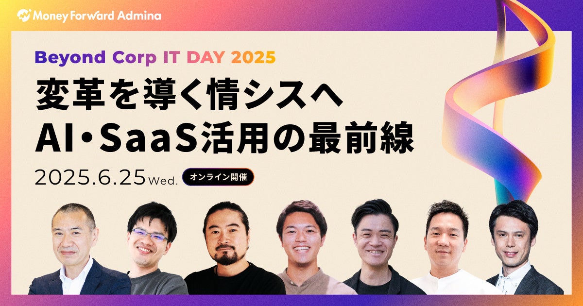 情シス向け業務OS『マネーフォワード Admina』を提供するマネーフォワードi株式会社は、2025年6月25日(水)に情報システム部門・DX部門向けのオンラインカンファレンス「Beyond Corp IT DAY 2025」を開催します。