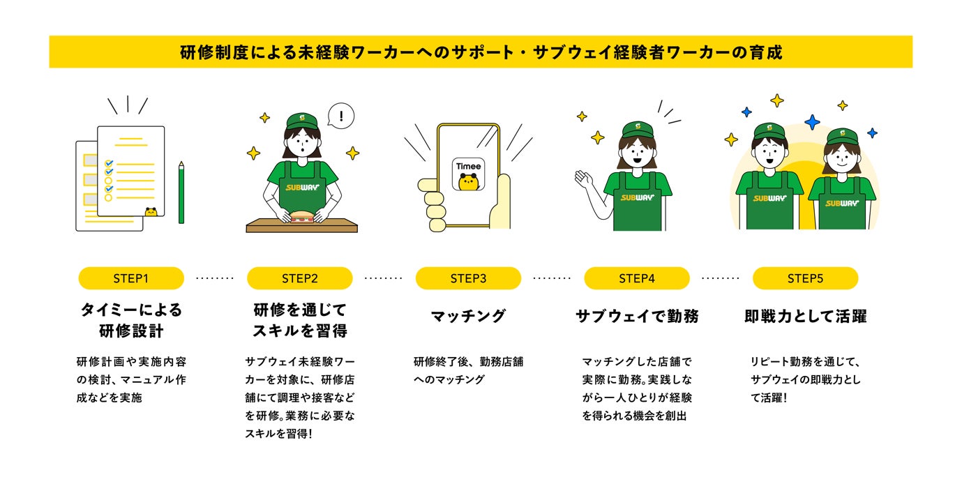 ワタミとタイミー 業務提携のお知らせ 大手外食チェーン初となる“フルタイミー”でのサブウェイ店舗運営を目指す~外食産業の人手不足解消とタイミーワーカーのキャリアアップの仕組みも構築〜