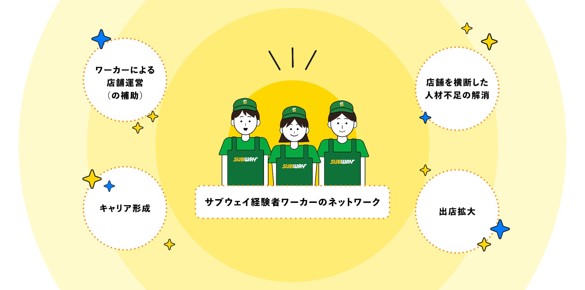 これらの取り組みを通じて、サブウェイ経験者ワーカーによる関係従業員(※2)を増やしネットワークを形成することで、店舗横断による人材確保を通じたシフト構築の実現も目指します。