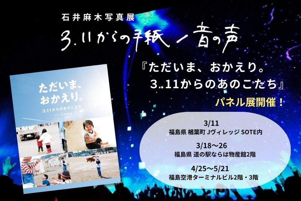 世界文化社より2月22日(水)に刊行した、東日本大震災を知らない子どもたちへ記憶を引継ぎ、希望を伝える写真絵本『ただいま、おかえり。3.11からのあのこたち』発売を記念して、石井麻木写真展【3.11からの手紙/音の声】内で、パネル展を開催いたします。