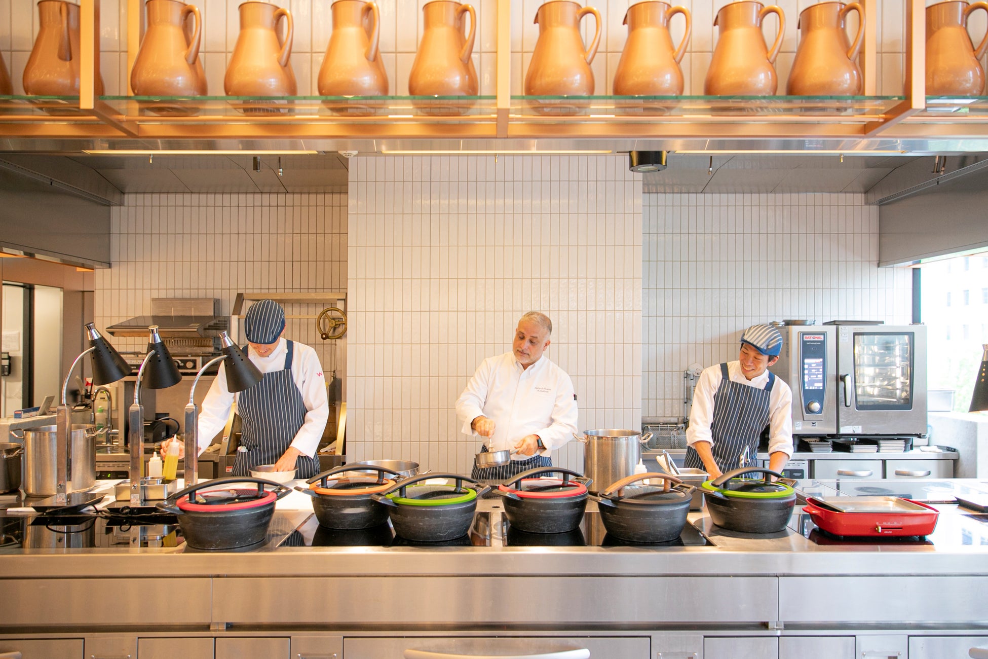 「Oh. lala…」では、たこ飯、餃子をはじめ、ローストビーフやチーズフォンデュ、テリーヌ、キッズコーナーなどをご用意。食後には、デザートコーナーにてお好きなだけスイーツをお楽しみ頂けるほか、チョコレート・ファウンテンもお目見えします。