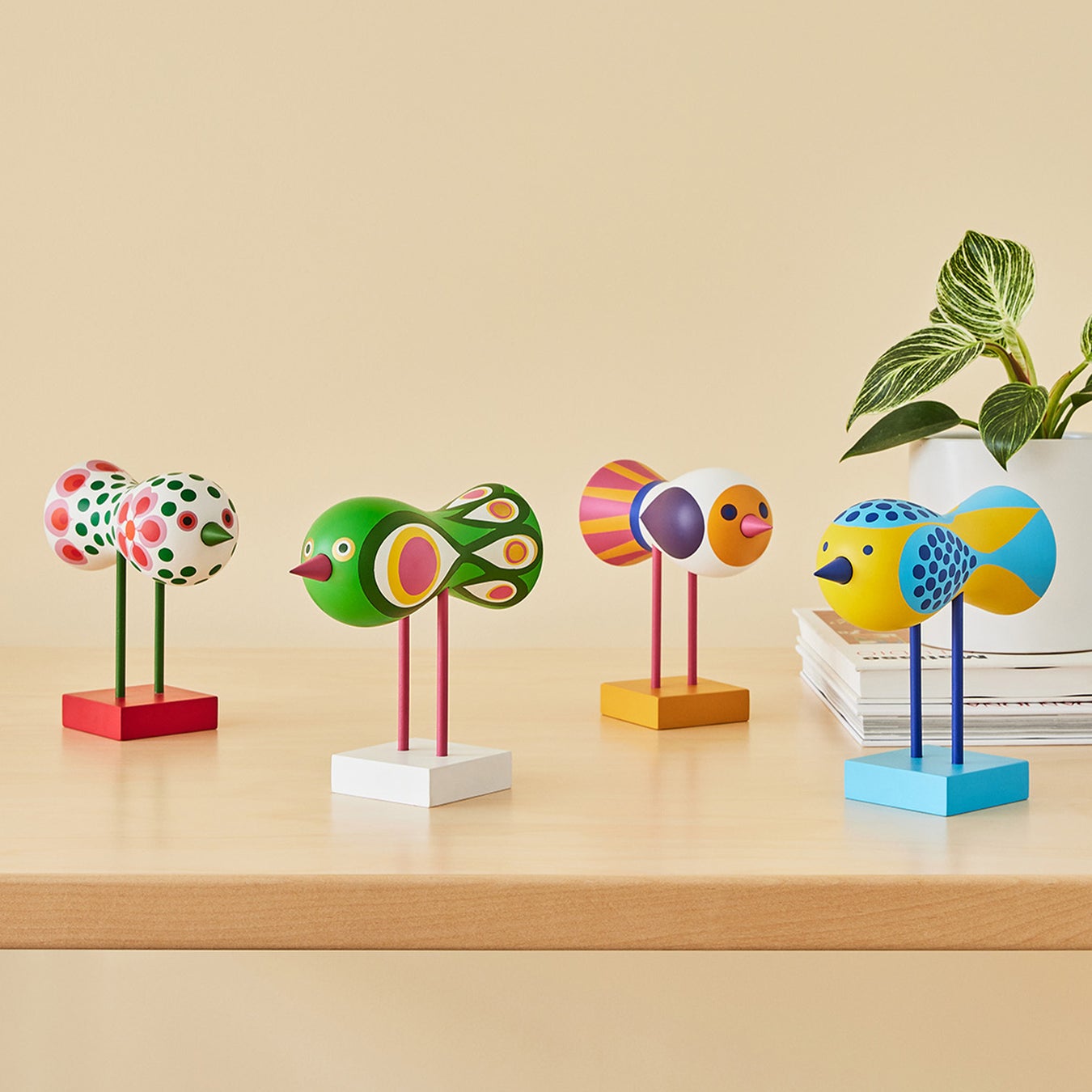 スウェーデンの陶芸家 Lisa Larson(リサ・ラーソン)が1967年に手掛けた愛らしい鳥たちが、Design House Stockholm(デザインハウスストックホルム)によって復刻しました。その鮮やかな色使いとメキシコの伝承にヒントを得た模様は、1960~70年代のフラワーパワーと平和の象徴である鳩を思わせつつも、現代でも新鮮でエネルギッシュな印象を与えます。