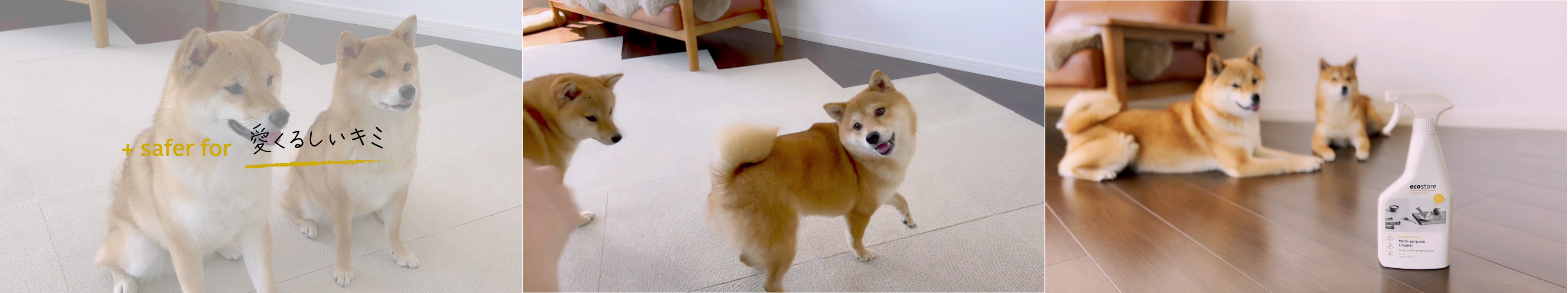 豆柴の福ちゃん・富くんとその飼い主さんであるご夫婦の日常を発信している動画クリエイターが出演。ペットがいるご家庭にもエコストア製品がおすすめなことを訴求するために、起用しました。家の中で飼い主とじゃれたり、くつろいだりと、ペットと過ごす日常のたいせつな時間を表現しました。