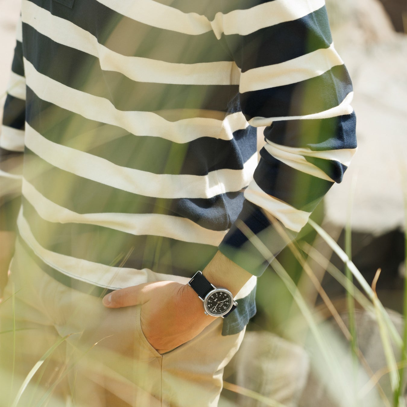 新作ではこれまでなかった37mmサイズが3型と、従来もバリエーションとして存在していた40mmサイズ1型の合わせて4モデルがラインナップ。ベルトはNATOタイプと呼ばれる2層仕様になり、それぞれ素材には環境に配慮したレザーあるいはファブリックを使っています。