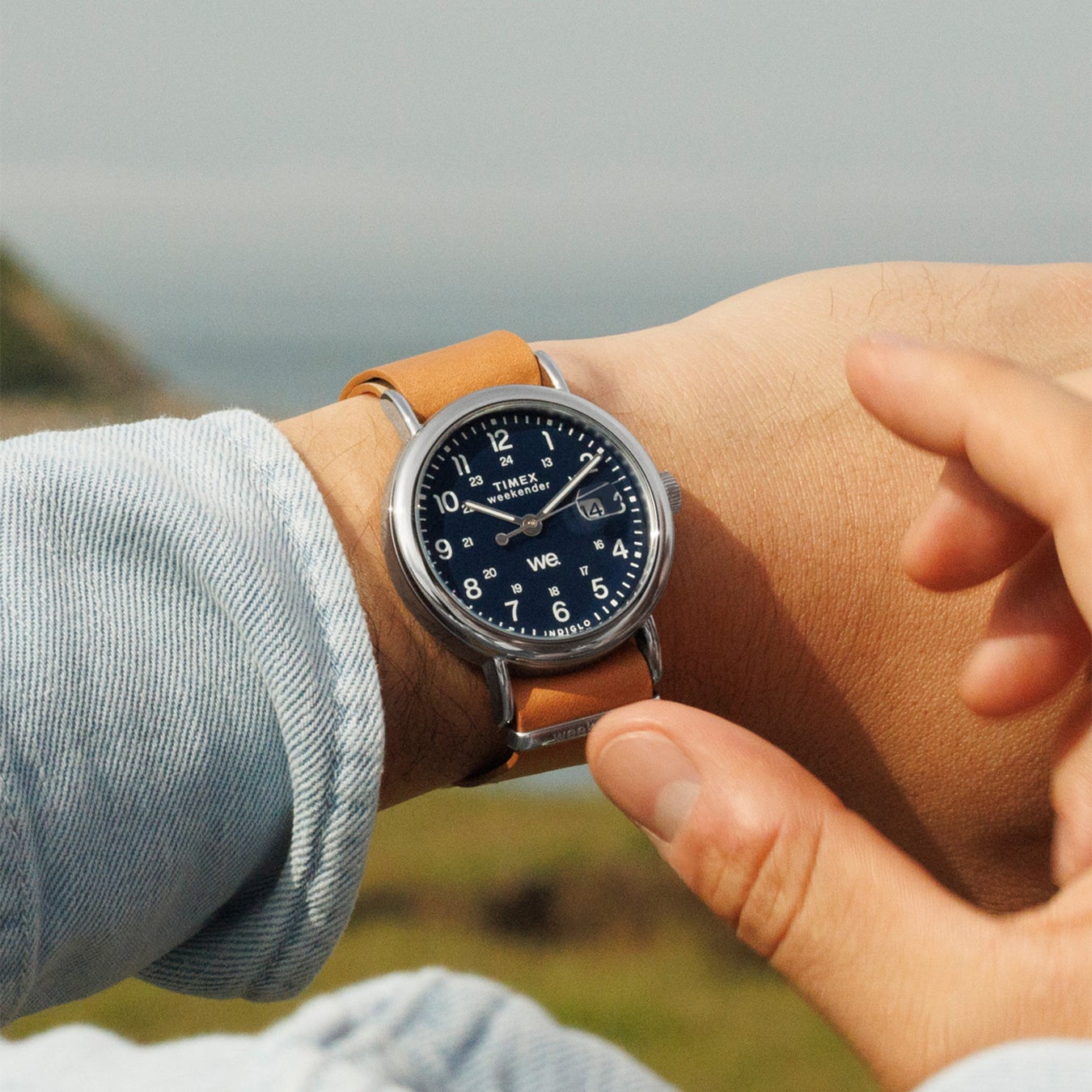 TIMEXの<ウィークエンダー>は誰にでも似合ってしまうシンプルなデザインに、同ブランドの創業地コネチカット州ウォータベリーが真鍮加工産業で栄えた歴史に基づき真鍮をケース素材に用いています。