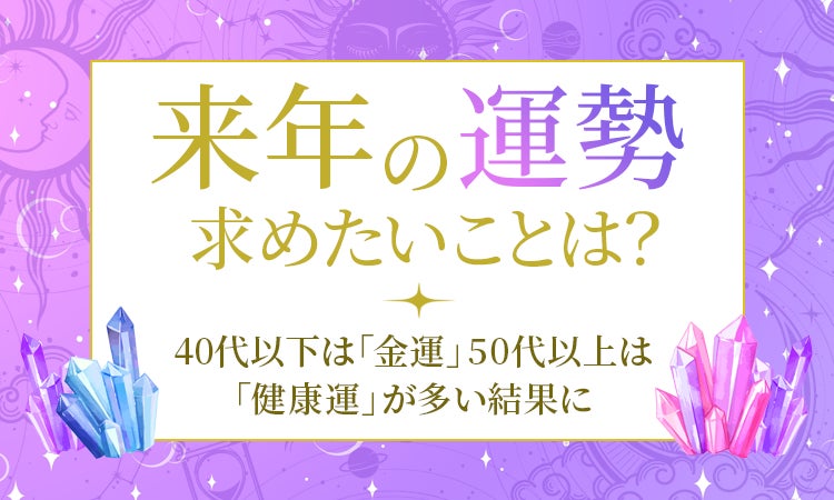 来年の運勢求めたいこととしてもっとも多かったのが、40代以下は「金運」で、50代以上は「健康運」という結果になりました。