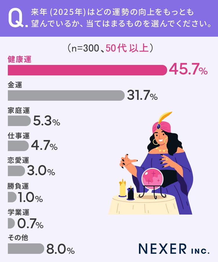 【来年の運勢求めたいことは?】40代以下は「金運」50代以上は「健康運」が多い結果に