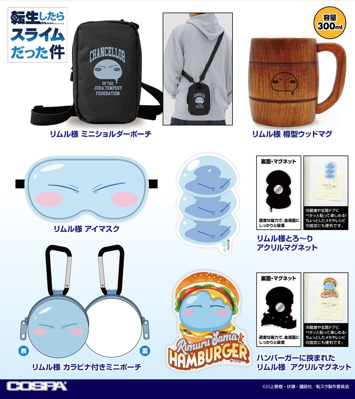 公式キャラクターコスチュームやアパレル・グッズの企画、開発、製造を行う株式会社コスパ(所在地:東京都渋谷区、代表取締役:松永芳幸)は、『転生したらスライムだった件』新グッズを発表した。